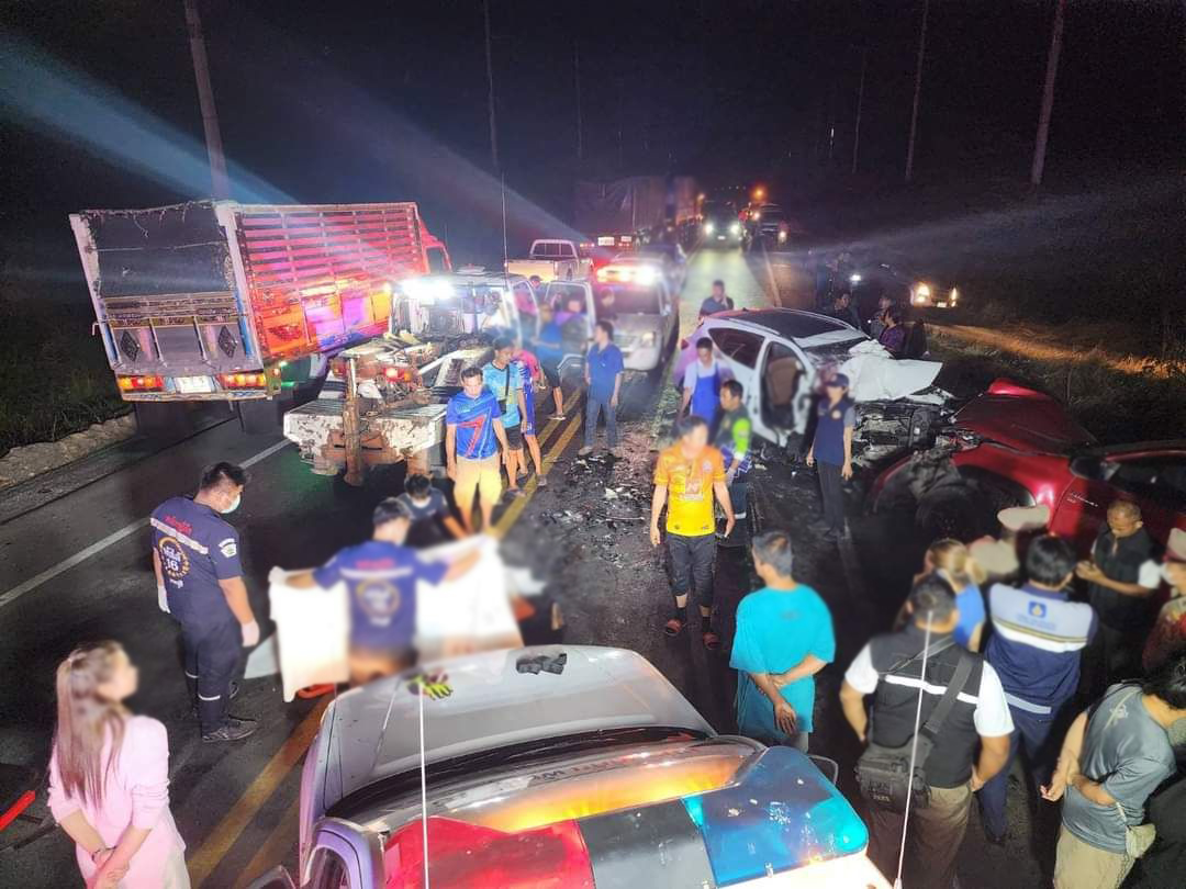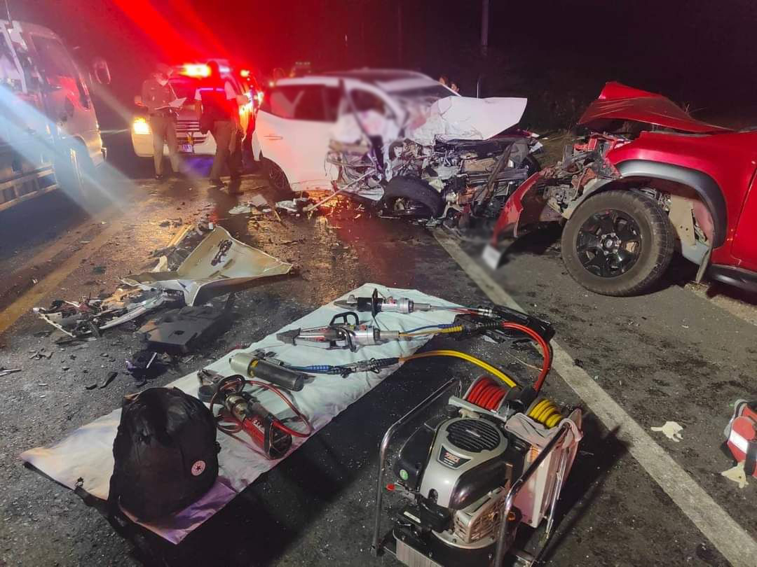 อุบัติเหตุรถชนประสานงาเข้าอย่างจัง กลางถนนหมายเลข 2338 บาดเจ็บหลายรายและมีผู้เสียชีวิต จ.ลพบุรี