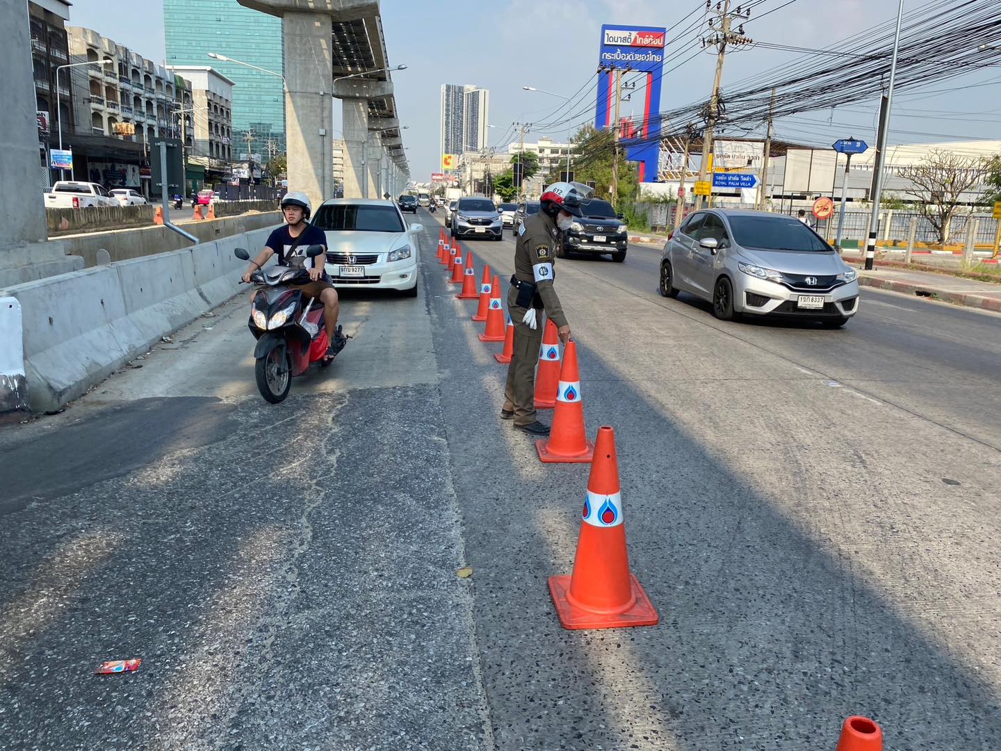 6. สภ.สำโรงเหนือ ดำเนินการจัดวางกรวยยางจุดกลับรถเกาะยอ ฝั่งขาออกช่องทางขวาเฉพาะรถที่เลี้ยวกลับเท่านั้น ส่วนรถที่ออกจาก ร.ร.นานาชาติไทย-สิงคโปร์ บังคับตรงให้กลับรถถัดไปที่จุดกลับรถดีแทคแทน เพื่อไม่ให้เกิดการตัดกระแสรถทางตรง