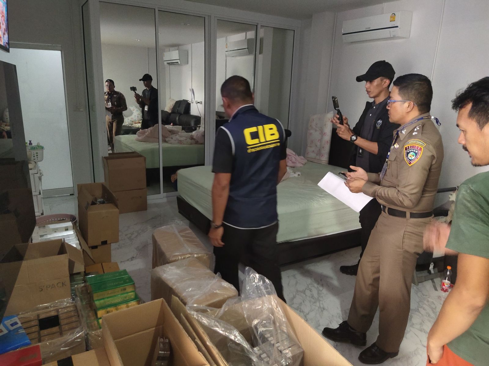 โดยจากการตรวจค้น พบบุหรี่ซิการ์แรตต่างประเทศที่มิได้ปิดแสตมป์ยาสูบอยู่บริเวณด้านหลังเคาท์เตอร์เก็บเงิน ซึ่งมีการดัดแปลงห้องด้านหลังเพื่อใช้เก็บสินค้าที่เป็นบุหรี่ซิการ์แรตต่างประเทศ รวมทั้งสิ้นจำนวน 8,190 ซอง (169,800 มวน) รวมมูลค่าของกลางกว่า 2 ล้านบาท จึงได้ทำการจับกุมและตรวจยึดสิ่งของดังกล่าว นำส่งพนักงานสอบสวน สภ.ปากพนัง เพื่อดำเนินการขั้นตอนของกฎหมายต่อไป
