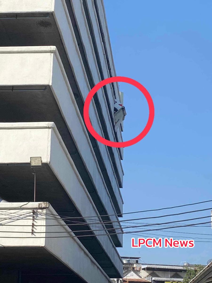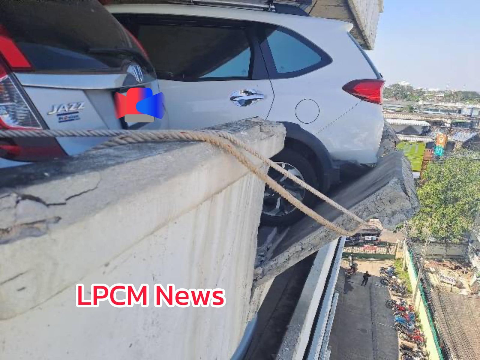 ระทึก รถคันเร่งค้าง ระหว่างขับลงอาคาร พุ่งชนรถที่จอดท้ายทะลุขอบกำแพงกั้น หวิดร่วงจากชั้น 7 จ.ลำปาง