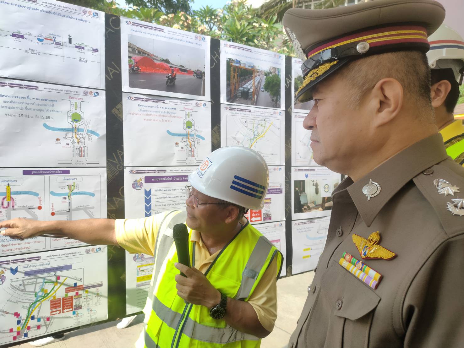 พล.ต.ต.ธวัช วงศ์สง่า รอง ผบช.น. กล่าวว่า รฟม. และผู้รับจ้างฯ โครงการรถไฟฟ้าสายสีม่วงฯ ได้นำเสนอแผนการจัดจราจร และหารือแนวทางการปิดเบี่ยงจราจรกับ บช.น. และสถานีตำรวจในพื้นที่อย่างต่อเนื่อง เพื่อระบายการจราจรฝั่งขาออก จากฝั่งพระนครมุ่งหน้าฝั่งธนบุรี ซึ่งมักจะมีปริมาณรถมากในช่วงเวลาดังกล่าว จึงมีความจำเป็นต้องบริหารและจัดการจราจรให้มีประสิทธิภาพมากที่สุด โดยระหว่างการดำเนินงานปิดเบี่ยง จะมีการจัดสรรกำลังเจ้าหน้าที่ตำรวจจราจร พร้อมด้วยอาสาจราจรของผู้รับจ้างฯ เพื่อร่วมกันอำนวยความสะดวกด้านการจราจรให้กับประชาชนที่ใช้เส้นทาง รวมถึงจะร่วมกันเฝ้าระวังและประเมินสถานการณ์ตลอดระยะการดำเนินงาน