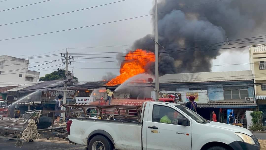 ไฟไหม้ห้องแถว 2 ชั้นติดตลาดหนองม่วง ริมถนนพหลโยธิน เสียหายวอดหลายหลัง จ.ลพบุรี