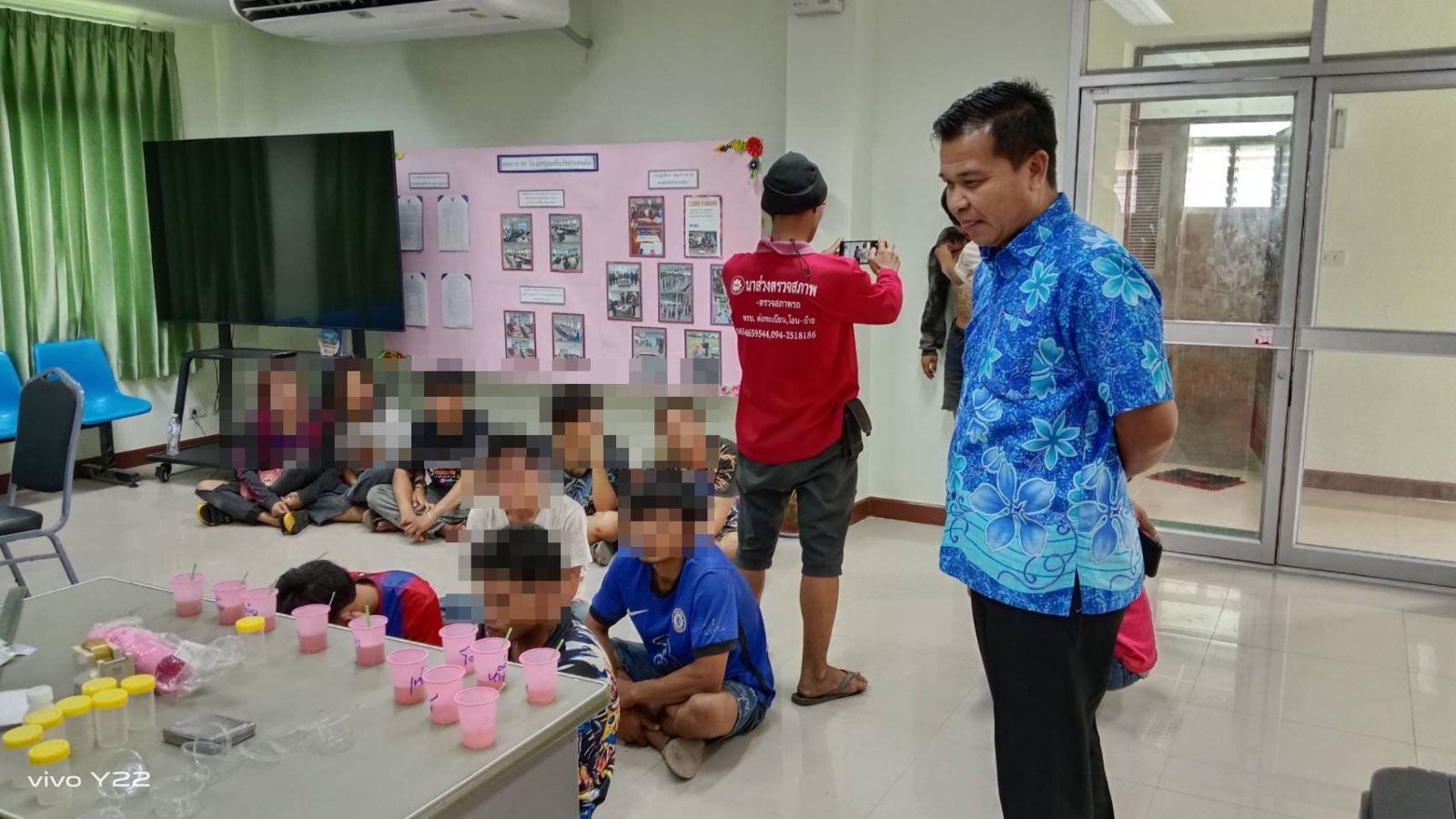 นายพร (นามสมมุติ) ของกลางยาบ้า 30 เม็ด , นายวุธ (นามสมมุติ) อายุ 19 ปี , นายชาญ (นามสมมุติ) อายุ 48 ปี นายวา (นามสมมุติ) 18 ปี , นายพงษ์ (นามสมมุติ) อายุ 18 ปี , นายวัฒน์ (นามสมมุติ) อายุ 25 ปี , นายสัน (นามสมมุติ) อายุ 18 ปี , น.ส.ข้าว (นามสมมุติ) อายุ17 ปี , น.ส.ทิพย์ (นามสมมุติ) อายุ 24 ปี , นายชัย (นามสมมุติ) อายุ 41 ปี และ นายฤทธิ์ (นามสมมุติ) อายุ 26 ปี โดยผลตรวจปัสสาวะ จากโรงพยาบาลสมเด็จพระยุพราช พบสารเสพติดประเภท (ยาบ้า) ในปัสสาวะ จำนวน 10 ชุด