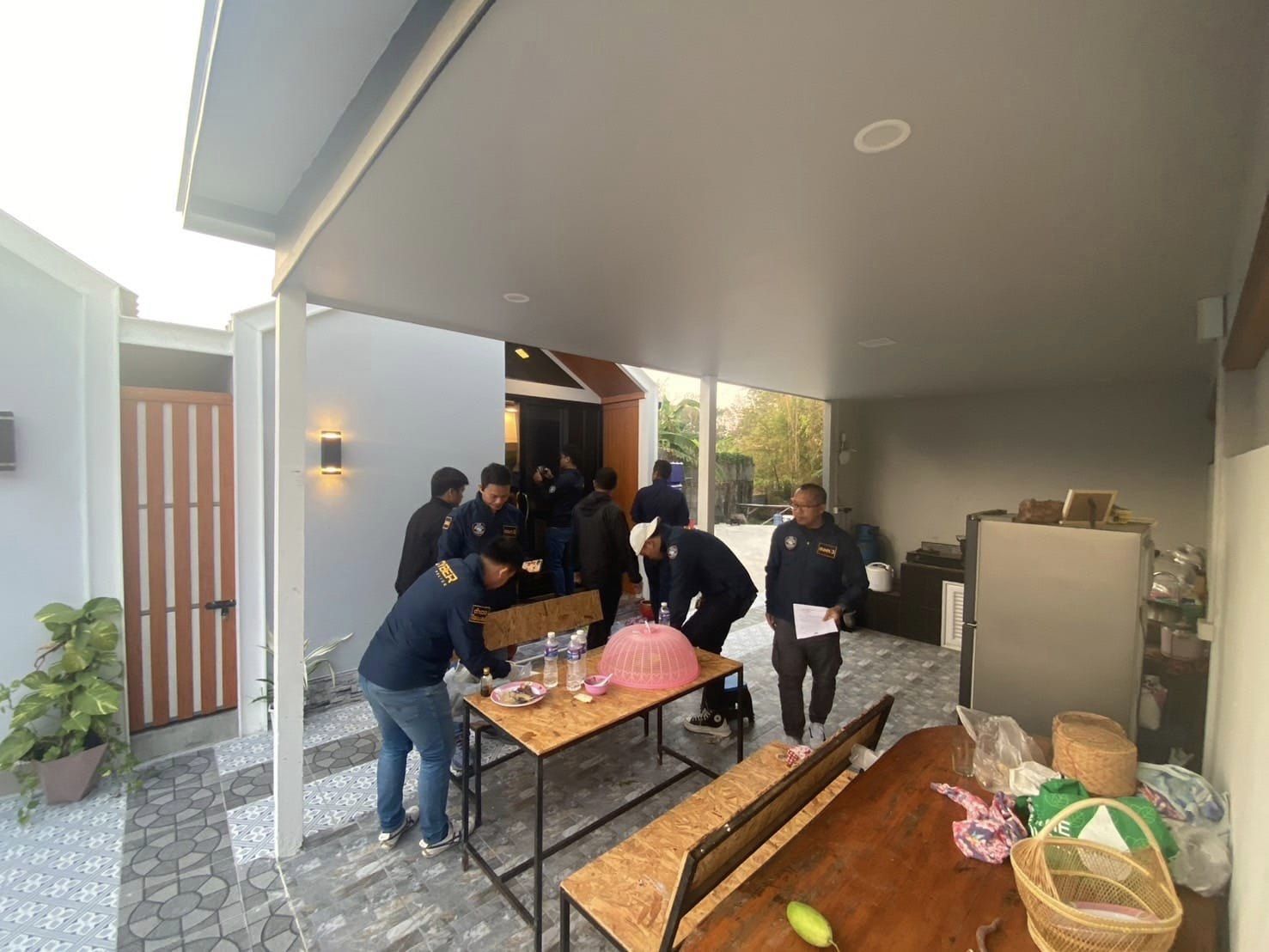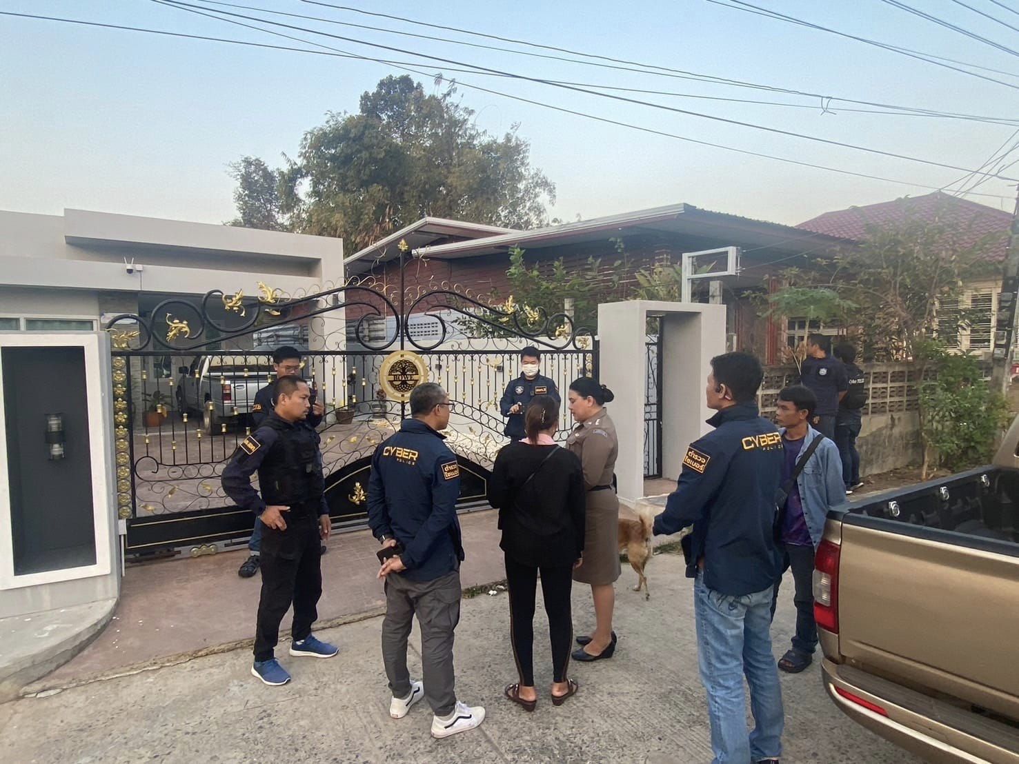 ต่อมาได้นำหมายค้นฯ ดังกล่าว เข้าทำการตรวจค้นบ้าน และพบเพียงมารดาของผู้ต้องหา จึงได้แสดงหมายค้นและทำการตรวจค้น และตรวจยึดพยานหลักฐานในบ้านพักดังกล่าว จากนั้นได้รวบรวมพยานหลักฐานสืบสวนขยายผลผู้ร่วมขบวนการ ในทุกมิติ อาทิเช่น เส้นทางการเงิน พบการเชื่อมโยงกับบุคคลอื่นอีกหลายรายโดยมีบัญชีเงินฝากเชื่อมโยงกัน จำนวน 12 บัญชี มีเงินหมุนเวียนในระยะเวลาหนึ่งเดือนประมาณ 10 ล้านบาท จึงสืบสวนขยายผลเชิงลับจนทราบว่ามีการทำเป็นขบวนการ จึงได้ร้องทุกข์กล่าวโทษต่อพนักงานสอบสวน กก.2 บก.สอท.3 เพื่อดำเนินคดีกับผู้มีส่วนเกี่ยวข้องจำนวน 3 ราย