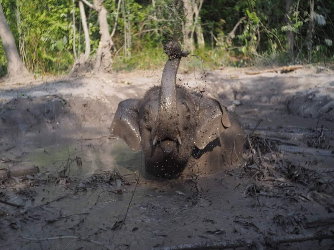 คืบหน้าลูกช้างป่าตกบ่อโคลน 2 วัน ล่าสุดแม่ช้างมาช่วยขึ้นจากบ่อแล้ว