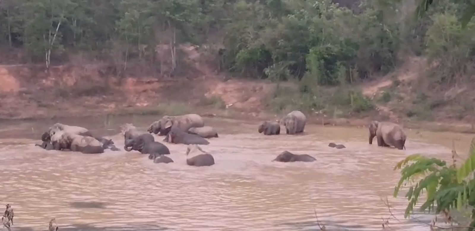 จากสภาพอากาศที่ร้อนอบอ้าวทำให้ช้างป่าละอูโขลงใหญ่ประมาณ 30 ตัว พากันลงเล่นน้ำเริงร่าคลายร้อนบริเวณอ่างกลางทางไปน้ำตกป่าละอู อ.หัวหิน จ.ประจวบฯ ท่ามกลางความตื่นตาตื่นใจจากประชาชนและนักท่องเที่ยวที่ผ่านเส้นทางแวะชมโขลงช้างและถ่ายภาพเก็บไว้ดูตามๆ กัน โดยมีเจ้าหน้าที่อุทยานฯ เฝ้าระวังความปลอดภัยอย่างใกล้ชิด