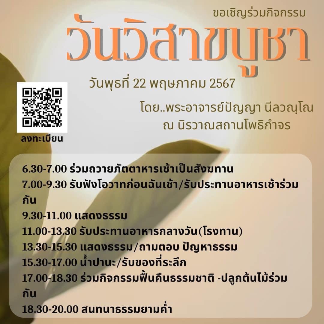กิจกรรม วันวิสาขบูชา 22 พฤษภาคม นี้ ที่ นิรวาณสถานโพธิกำจร ญาติธรรมที่สนใจเข้าร่วมฟังธรรม และปลูกต้นไม้เพื่อช่วยลดโลกร้อน สามารถลงทะเบียนเพื่อเข้าร่วมได้ ตามลิงค์ ด้านล่าง