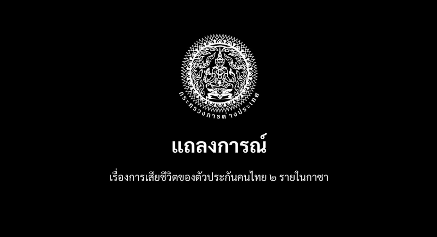 กระทรวงการต่างประเทศ แถลงการณ์ 'เรื่องการเสียชีวิตของตัวประกันคนไทย 2 รายในกาซา'