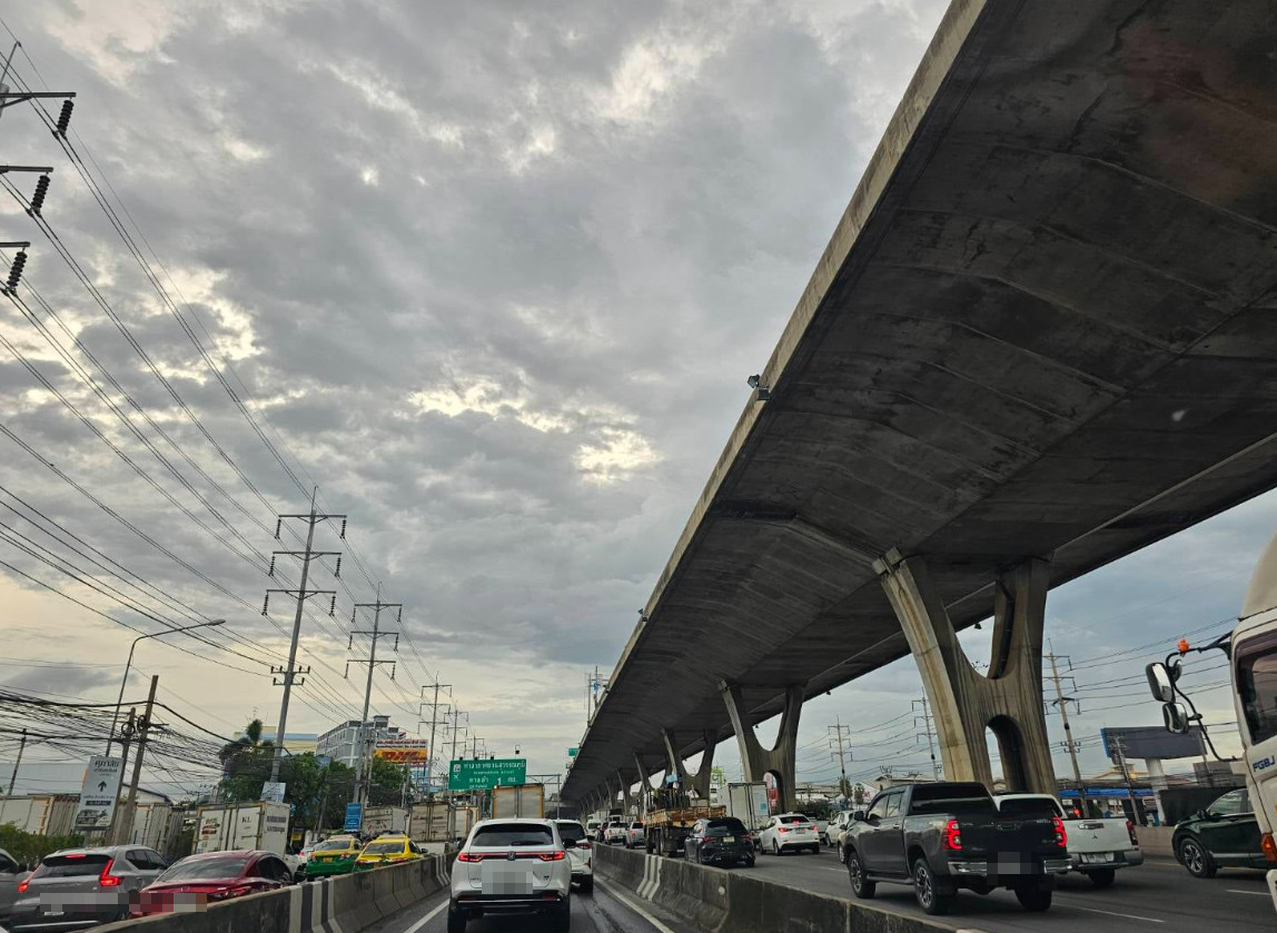 25 พ.ค. 2567 เวลา 17.40 น. ถ.บางนาตราด ขาเข้า ก่อนถึงทางเข้าสนามบินสุวรรรภูมิ 1 กม. รถหนาแน่น
