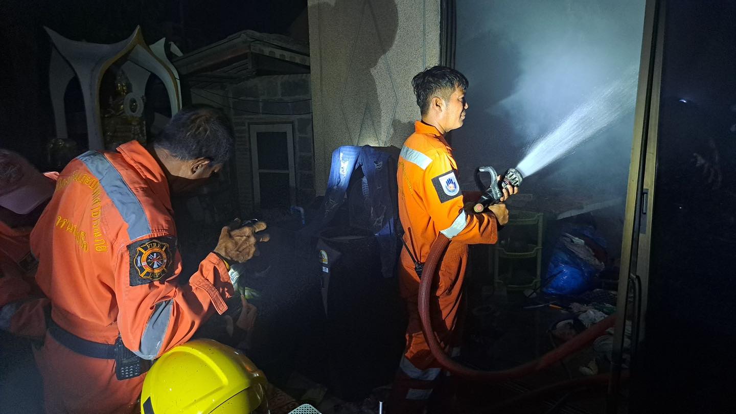 สองผัวเมียหนีตาย เพลิงไหม้บ้านเกือบวอดทั้งหลัง โชคดีเจ็บเล็กน้อย จ.ชลบุรี