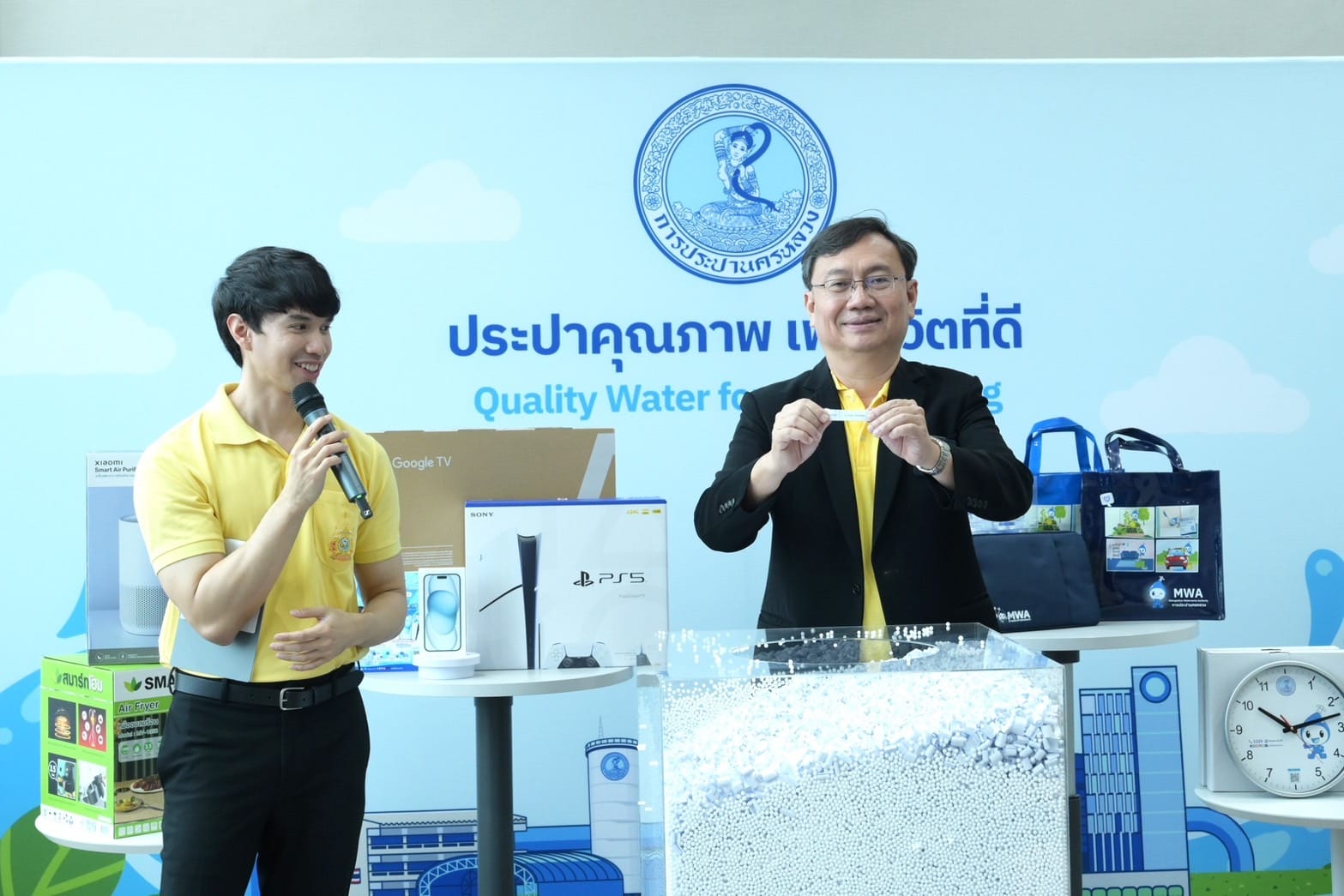 เมื่อวันที่ 10 มิถุนายน พ.ศ. 2567 เวลา 13.00 น. ณ ห้องรับรอง 1 ชั้น 5 อาคารสุทธิอุทกากร น.ส.ฉวีวรรณ อุทัยพิบูลย์ รองผู้ว่าการ (บริการด้านตะวันออก) การประปานครหลวง (กปน.) น.ส.บุษกร พฤกษอาโนชา รองผู้ว่าการ (การเงิน) นายสุเทพ เอื้อปกรณ์ รองผู้ว่าการ (บริการด้านตะวันตก) และ นางเมธาวี สุชาติล้ำพงศ์ ผู้ช่วยผู้ว่าการ (สำนักผู้ว่าการ) ร่วมพิธีจับรางวัลมอบโชคให้แก่ผู้โชคดีที่เข้าร่วมกิจกรรม "MWA e-Bill Service เปลี่ยนบิลกระดาษ เป็นบิลอิเล็กทรอนิกส์" โดยมีผู้แทนจากกรมการปกครอง และผู้แทนจากสื่อมวลชน ร่วมเป็นสักขีพยานในพิธีจับรางวัลฯ รวมทั้งสิ้น 55 รางวัล ดังนี้