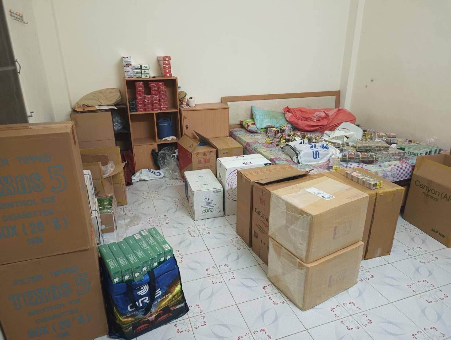 ทลายแหล่งจำหน่ายบุหรี่ปลอม หลายยี่ห้อดัง พบของกลางเกือบ 5 พันซอง
