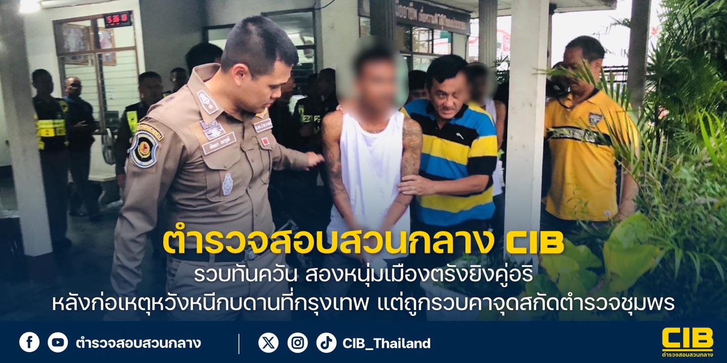 ตำรวจสอบสวนกลาง รวบทันควัน สองหนุ่มเมืองตรังยิงคู่อริ หลังก่อเหตุหวังหนีกบดานที่กรุงเทพ แต่ถูกรวบคาจุดสกัดตำรวจชุมพร