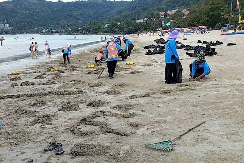สาหร่ายสะพรั่ง เต็มอ่าวป่าตอง คลื่นซัดเกลื่อนหาด เทศบาลเร่งกำจัดวันละกว่า 20 ตัน