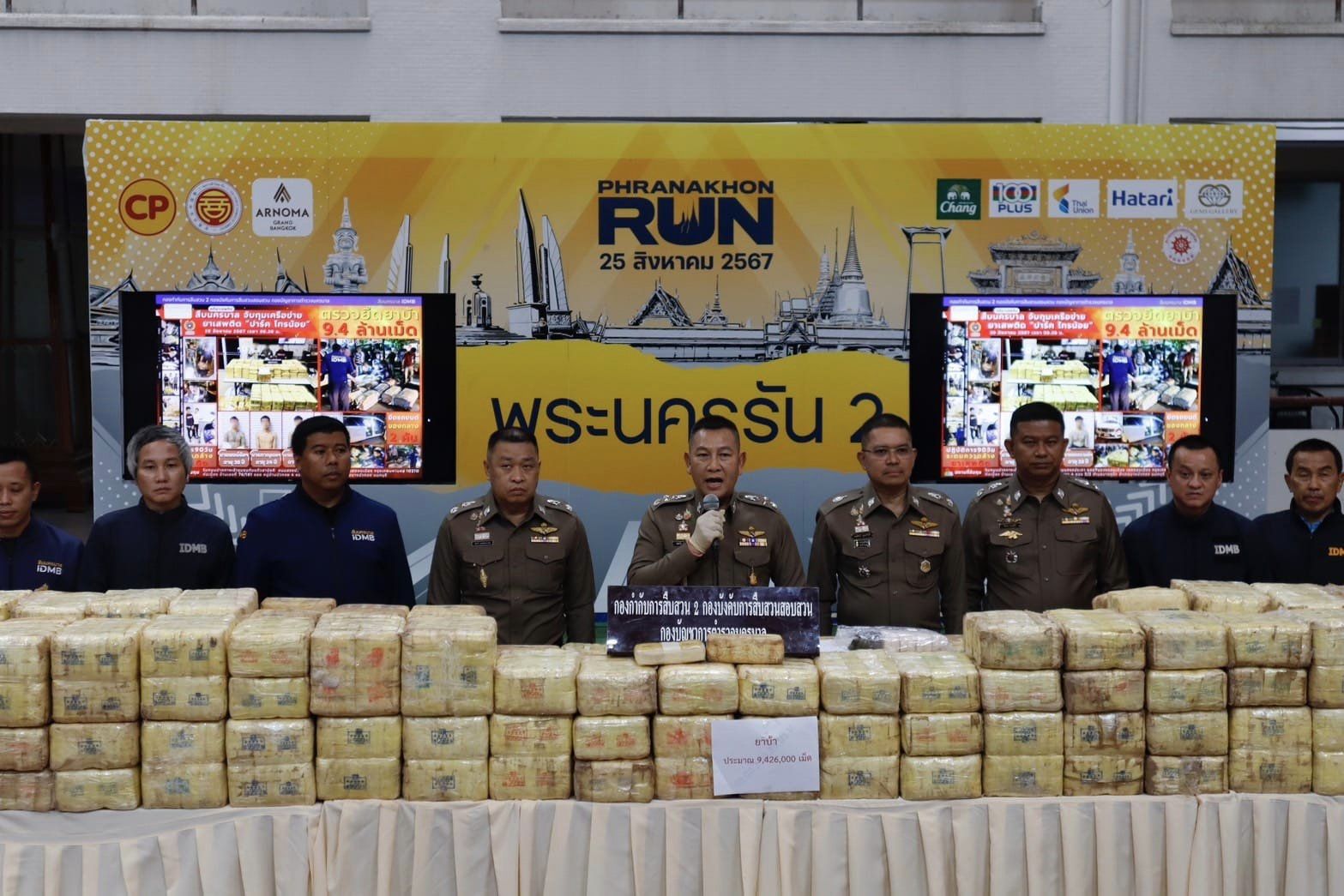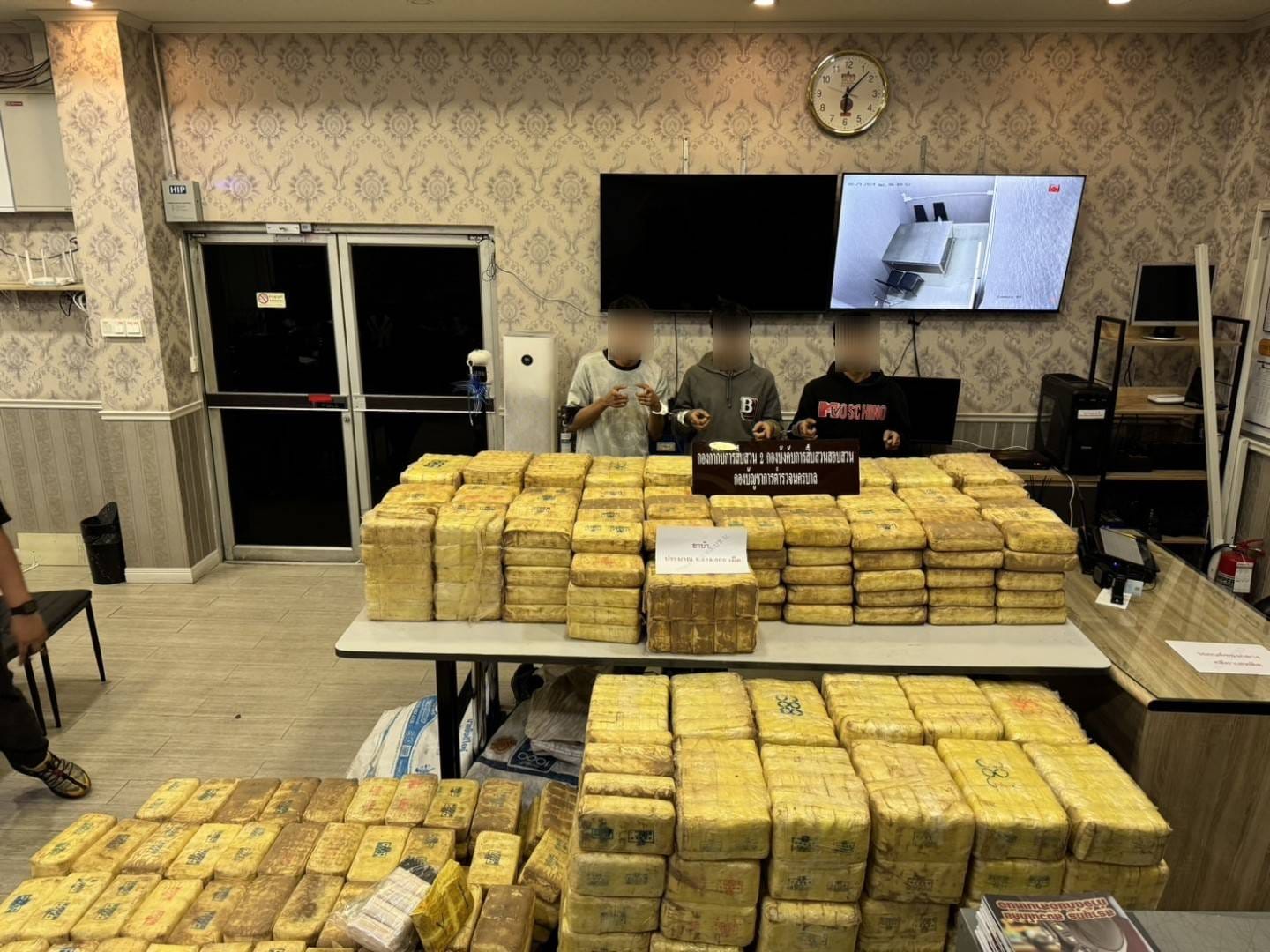 สืบนครบาล จับกุมผู้ต้องหา 3 ราย พร้อมด้วยของกลาง ยาบ้า จำนวนประมาณ 9,426,000เม็ด ,รถยนต์2คัน , โทรศัพท์มือถือ จำนวน 5 เครื่อง แจ้งข้อหา “ร่วมกันจำหน่ายยาเสพติดให้โทษประเภท 1 โดยการมีไว้เพื่อจำหน่ายโดยฝ่าฝืนต่อกฎหมาย” โดยจับกุม ริมถนนปากทางเข้าชุมชนทับแก้วสามัคคี ถนนสรงประภา กรุงเทพมหานคร และบ้านพักในตำบลบางคูรัด อำเภอบางบัวทอง นนทบุรี 11110