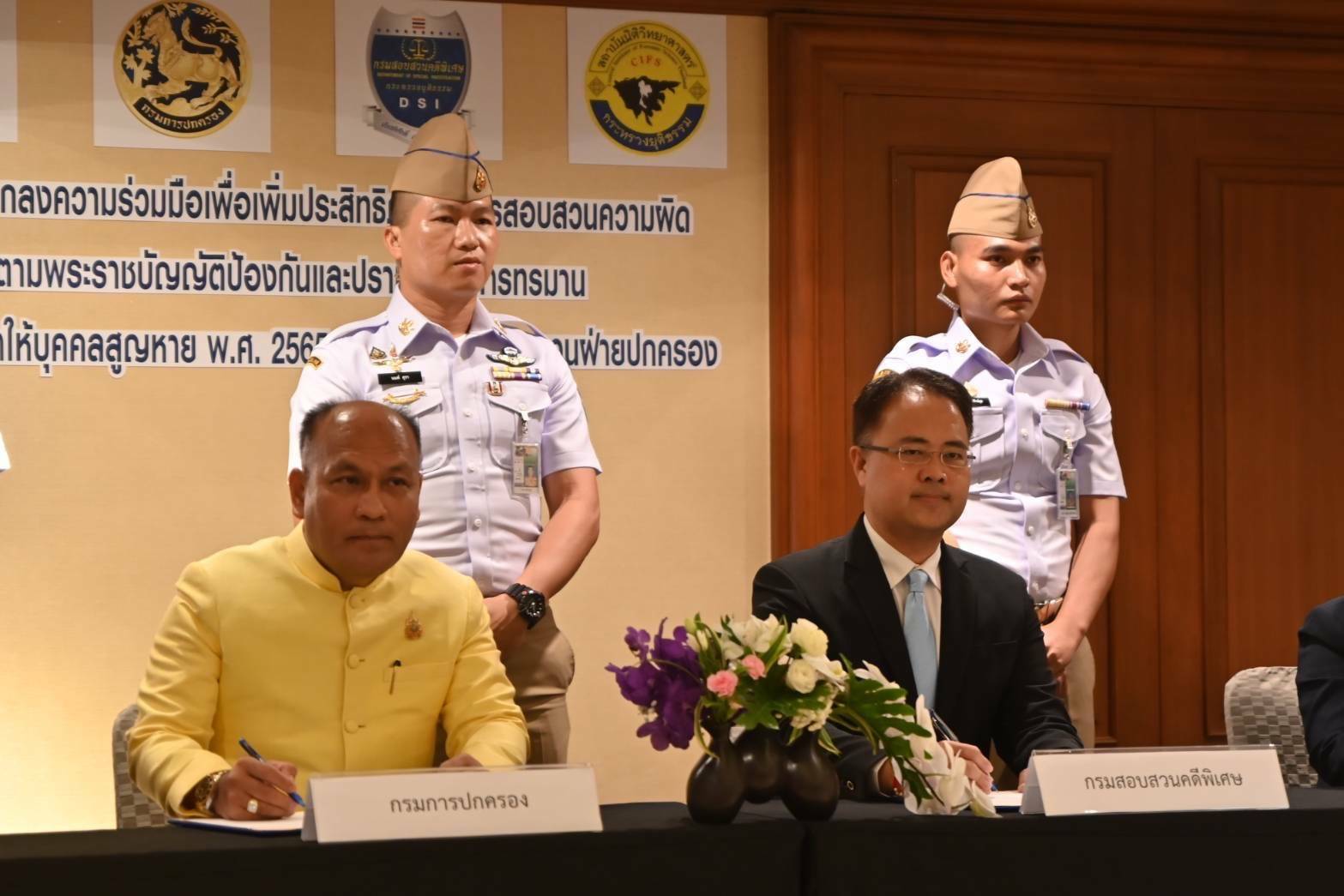 วันพฤหัสบดีที่ 12 กันยายน 2567 เวลา 13.00 น. ณ โรงแรมเดอะสุโกศล เขตราชเทวี กรุงเทพฯ นายอรรษิษฐ์ สัมพันธรัตน์ อธิบดีกรมการปกครอง มอบหมาย นายบรรจบ จันทรัตน์ รองอธิบดีกรมการปกครอง ฝ่ายการทะเบียนและเทคโนโลยีสารสนเทศ ร่วมลงนามบันทึกข้อตกลงความร่วมมือเพื่อเพิ่มประสิทธิภาพในการสอบสวนความผิดตามพระราชบัญญัติป้องกันและปราบปรามการทรมาน และการกระทำให้บุคคลสูญหาย พ.ศ. 2565 ของพนักงานสอบสวนฝ่ายปกครอง ร่วมกับ สำนักงานอัยการสูงสุด กรมสอบสวนคดีพิเศษ และสถาบันนิติวิทยาศาสตร์