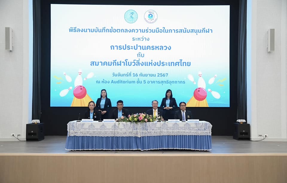 เมื่อวันจันทร์ที่ 16 กันยายน 2567 เวลา 14.00 น. ณ ห้องออดิทอเรียม ชั้น 5 อาคารสุทธิอุทกากร การประปานครหลวง (กปน.) สำนักงานใหญ่ นายรักษ์ศักดิ์ สุริยหาร รักษาการในตำแหน่งผู้ว่าการ กปน. และ นายสมพันธ์ จารุมิลินท นายกสมาคมกีฬาโบว์ลิ่งแห่งประเทศไทย ร่วมพิธีลงนามบันทึกข้อตกลงความร่วมมือ (MOU) ในการสนับสนุนสมาคมกีฬา ระหว่าง กปน. กับ สมาคมกีฬาโบว์ลิ่งแห่งประเทศไทย พร้อมกันนี้ กปน. ได้มอบเงินสนับสนุน “โครงการ 1 กีฬา 1 รัฐวิสาหกิจ พลัส” เพื่อใช้ในการพัฒนากีฬาโบว์ลิ่งของประเทศไทย ยกระดับสู่มาตรฐานสากล โดยมีคณะผู้บริหาร กปน. และคณะผู้บริหารสมาคมกีฬาโบว์ลิ่งแห่งประเทศไทยร่วมงาน