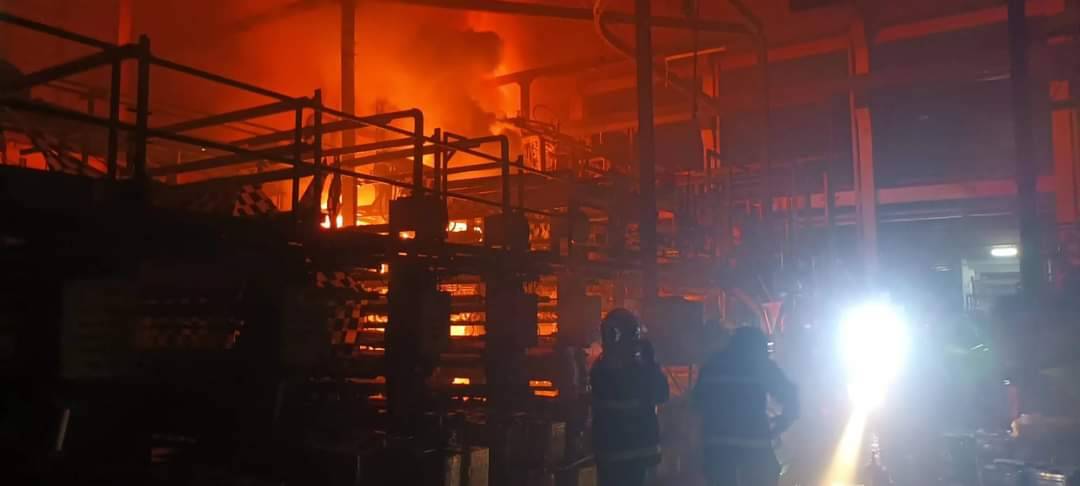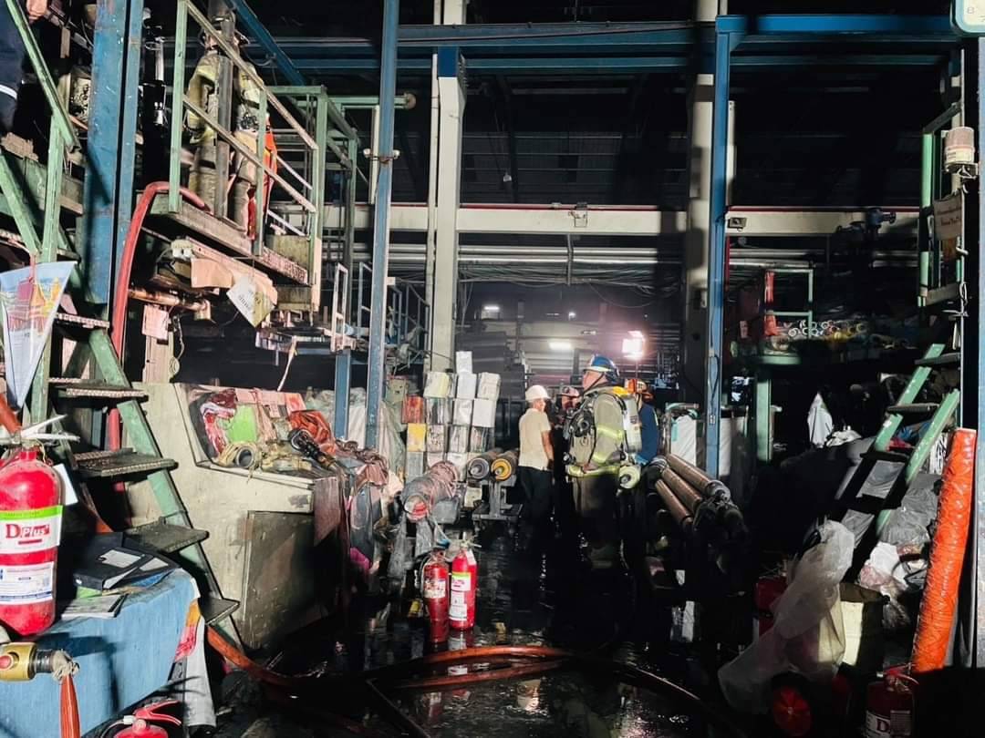 ไฟไหม้โรงงานเสื่อน้ำมัน ที่เมืองสมุทรสาคร เจ้าหน้าที่ดับเพลิงระดมฉีดน้ำ-โฟมดับวุ่น โชคดีดับทันก่อนลามทั้งอาคาร