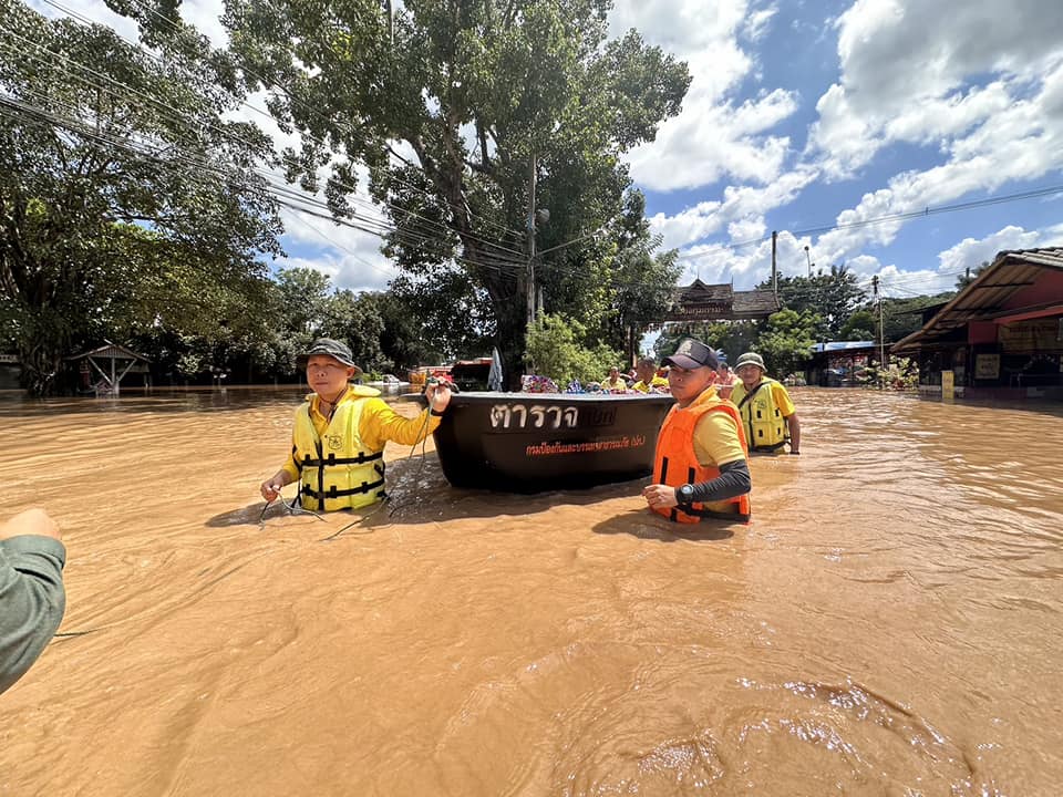 วันที่ 5 ตุลาคม 2567 ผู้สื่อข่ายรายงานว่า นพ.สมิต ศมพันธุ์พงศ์ ผู้อำนวยการโรงพยาบาลสารภี จ.เชียงใหม่ พร้อมด้วย พ.ต.อ.ผดุงเกียรติ ปัณฑรนนทกะ ผกก.ตชด.33 นายธนกฤษ เวียงแก้ว นายกสมาคมส่งเสริมการท่องเที่ยว ตำรวจตระเวนชายแดนที่ 33 และจิตอาสา 904 นำกำลังเข้าไปช่วยเหลือ คุณยายวัย 70 ปี ผู้ป่วยติดเตียง และลูกชายพิการทางสมอง บ้านถูกน้ำท่วมสูงกว่า 2 เมตร ในพื้นที่เมืองเก่าเวียงกรุงกาม ตำบลท่าวังตาล อำเภอสารภี จังหวัดเชียงใหม่ ออกมาพักในสถานที่ปลอดภัย