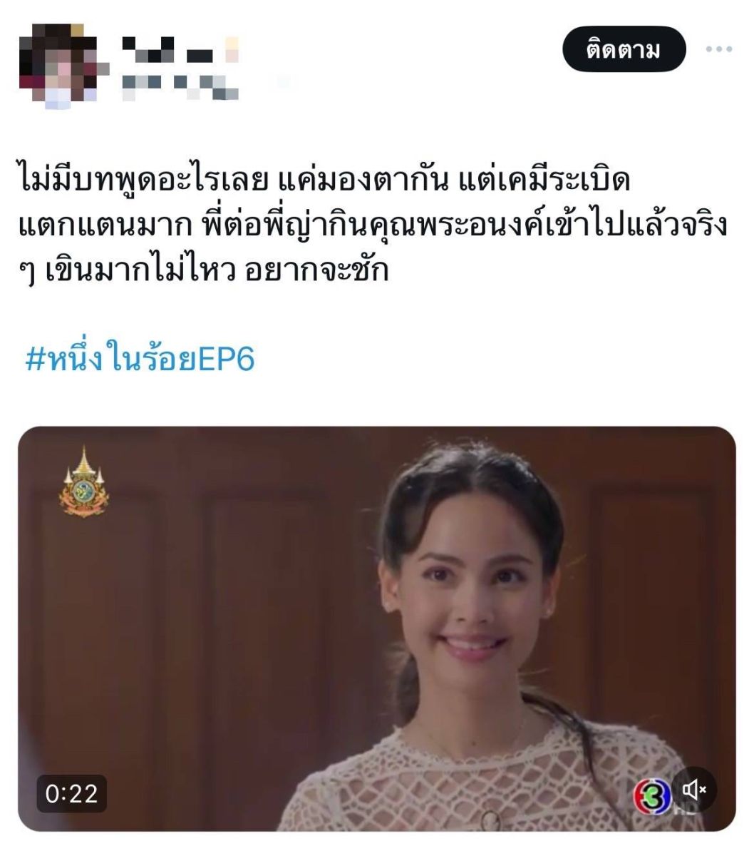 เรียกว่าแต่ละเพจ แต่ละเว็บ ยังคงพูดถึง และต่างพากันรีวิวชื่นชมคู่พระนางกับเคมีที่ดูละมุน จนตอนนี้สาว ๆ ต่างบอกเป็นเสียงเดียวกันว่าอยากเป็นอนงค์กันทั้งเมือง สำหรับหนึ่งในร้อย EP6 ที่ผ่านมา กับฉาก คุณพระ(ต่อ ธนภพ) และ อนงค์(ญาญ่า อุรัสยา) โชว์หวานผ่านตู้โทรศัพท์ ถึงแม้จะเป็นฉากในจินตนาการของคุณพระ แต่ก็กลายเป็นช็อตไวรัลสุดฮือฮาไม่น้อย เพราะอินเนอร์ของทั้งคู่ตกคนดูจนอยู่หมัด ทำเอาชาวโซเชียลพากันยิ้มแก้มปริ เขินกันตัวบิดกันทีเดียว พร้อมแห่อวยยศชื่นชมในฝีมือการแสดงของทั้งคู่ชุดใหญ่
