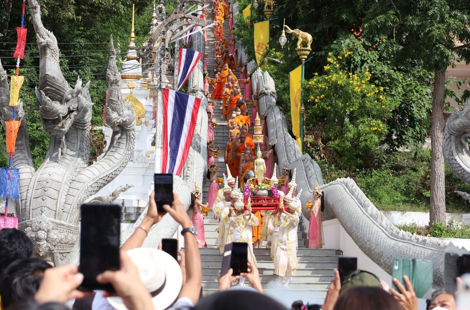 ประเพณีตักบาตรเทโวประจำปี 2567 โดยมีพระสงฆ์ 500 รูป เดินลงจากยอดเขาสะแกกรัง ผ่านบันได 449 ขั้น ลงมายังลานวัดสังกัสรัตนคีรี จ.อุทัยธานี