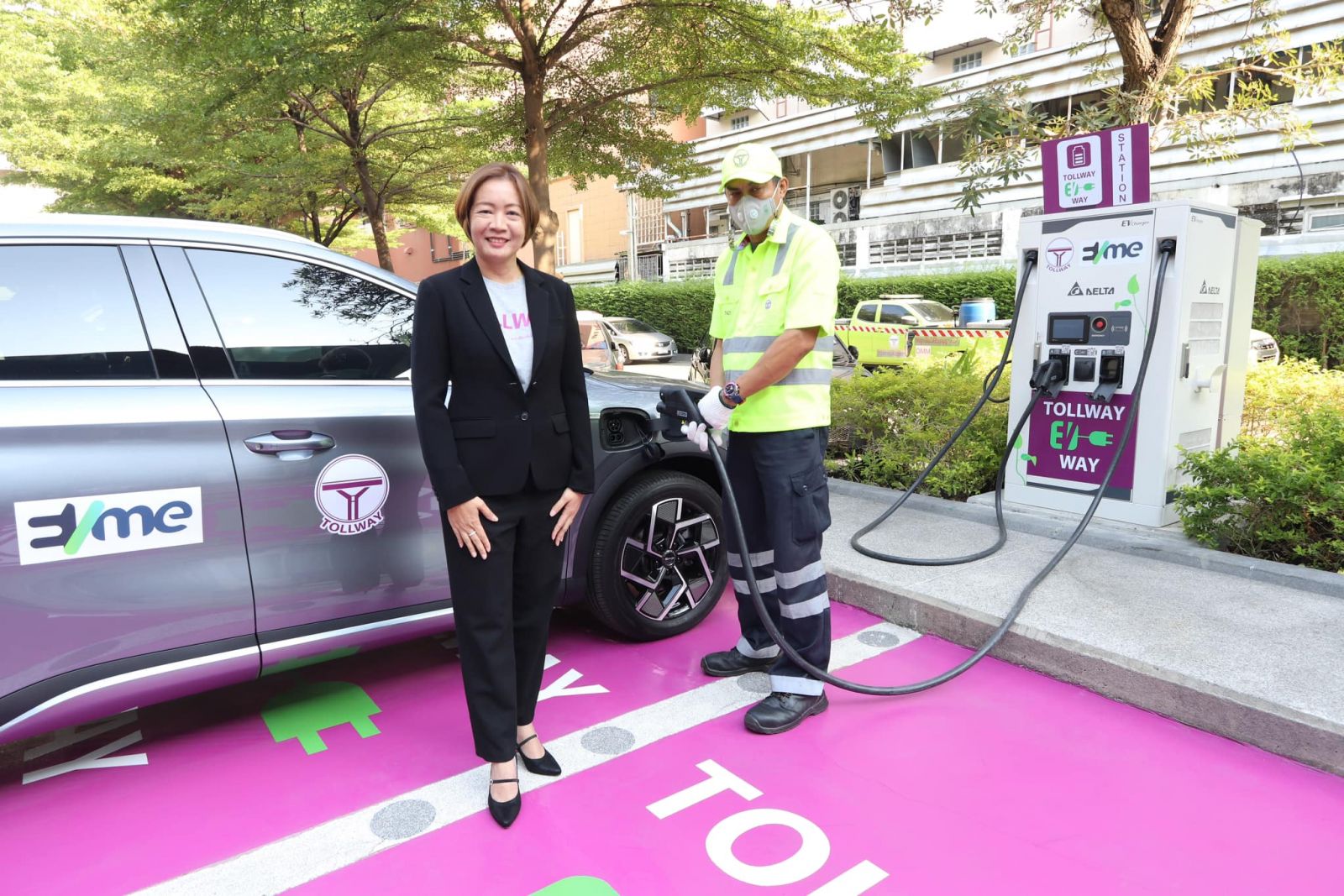 นางอโนมา อุฤทธิ์ รองกรรมการผู้จัดการสายงานปฏิบัติการ ได้ให้ข้อมูลเพิ่มเติมว่า “นอกจากสถานีชาร์จไฟฟ้าแบบ DC Fast Charge แล้ว DMT ได้เปิดตัวโครงการทดลองทดสอบใช้รถ EV ด้านการปฏิบัติการ โดยการเปลี่ยนรถของบริษัทฯ เป็นรถ EV ซึ่งจะมีการทดลองทดสอบการประหยัดพลังงาน และการลดมลพิษ ส่งเสริมโครงการลดก๊าชเรือนกระจกขององค์กร ซึ่งเริ่มจากการใช้รถ EV สำหรับรถตรวจการณ์ โดยการสร้างประสบการณ์การใช้งาน ประเมินการประหยัดพลังงาน และการลดมลพิษ เทียบกับการใช้รถยนต์น้ำมัน และ หลังจากนี้จะมีการขยายผลไปยังรถปฏิบัติการของ DMT คันอื่นๆ ต่อ ไป ซึ่งจากผลการประเมินเบื้องต้นหากรถตรวจการณ์ของ DMT 1 คัน ที่วิ่งตรวจสอบทางยกระดับ ที่ใช้น้ำมันเฉลี่ย 600 ลิตรต่อเดือน เปลี่ยนเป็นรถ EV ก็จะสามารถประหยัดได้ กว่าสองแสนบาทต่อปี ลดก๊าชเรือนกระจกได้ 20 ตันคาร์บอนเทียบเท่า”