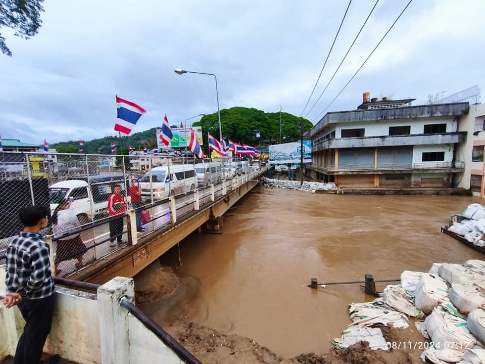 8 พฤศจิกายน 2567 หลังเกิดฝนตกลงมาอย่างหนักในพื้นที่ อ.แม่สาย จ.เชียงราย ส่งผลให้เช้าวันนี้มีน้ำท่วมขังในพื้นที่ โดยผู้ใช้เฟซบุ๊ก สิริมงคล ปิงปิง แม่สาย โพสต์ภาพพร้อมข้อความลงในกลุ่ม แม่สาย @ที่นี่สายลมจอย เป็นสภาพน้ำท่วมขังในพื้นที่ตลาดสายลมจอย
