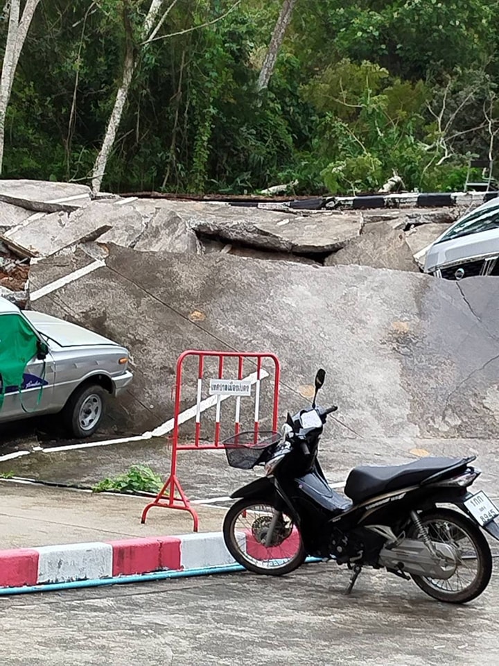 เบื้องต้นเจ้าหน้าที่เทศบาลฯ ได้กั้นบริเวณด้านหลังอาคารไม่ให้เข้าไปใกล้ เพราะเกรง ดินจะสไลด์ลงมาซ้ำ รถที่เคลื่อนย้ายออกมาได้ ก็เลื่อนออกมาจอดยังที่ปลอดภัยด้านล่าง ในขณะที่เจ้าหน้าที่เทศบาลบางส่วน ก็รีบช่วยกันขนย้ายข้าวของเอกสารต่าง ๆ ที่สำคัญออกมาจากตัวอาคารก่อน