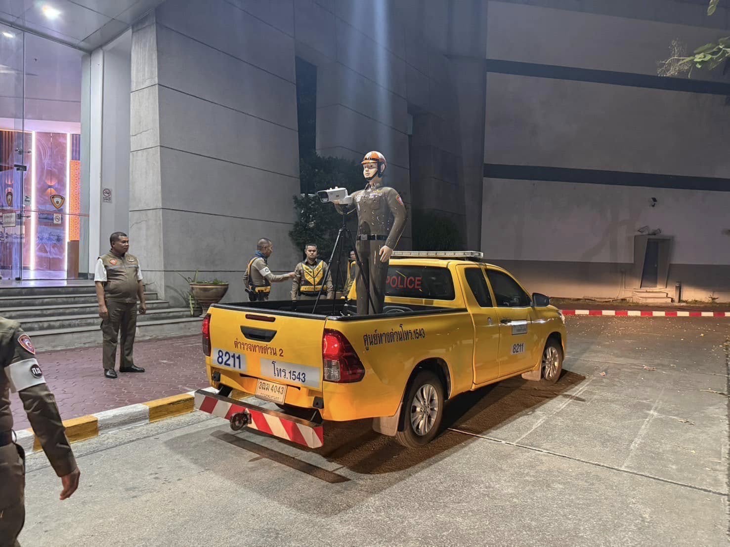 ทางพล.ต.ต.สุรเชษฐ์ บัณฑิตย์ ผบก.จร. ,พ.ต.อ.จตุพล เร่งถนอมทรัพย์ รอง ผบก.จร. ,พ.ต.อ.จามร ทองพรรณ รอง ผบก.จร. สั่งการให้พ.ต.อ.พารินท จันทร์เลิศ ผกก.2 บก.จร.พ.ต.ท.ทศพร กลีบแก้ว รอง ผกก.2 บก.จร. ดำเนินการจัดทำแผนป้องกันเหตุโดยคืนวันที่ 31ธันวาคม 2567 เวลา 23.30 น. ถึง วันที่1 มกราคม 2568 เวลา 00.30 น. ได้จัดเจ้าหน้าที่ตำรวจกองกำกับการ 2 กองบังคับการตำรวจจจราจร เพื่อป้องกันมิให้ประชาชนนำรถยนต์มาจอดพร้อมนั้น ได้นำหุ่น "สารวัตร เฉย AI"ซึ่งมีเทคโนโลยีบันทึกภาพผู้กระทำผิดกฎจราจรไปใช้ในครั้งนี้ด้วย