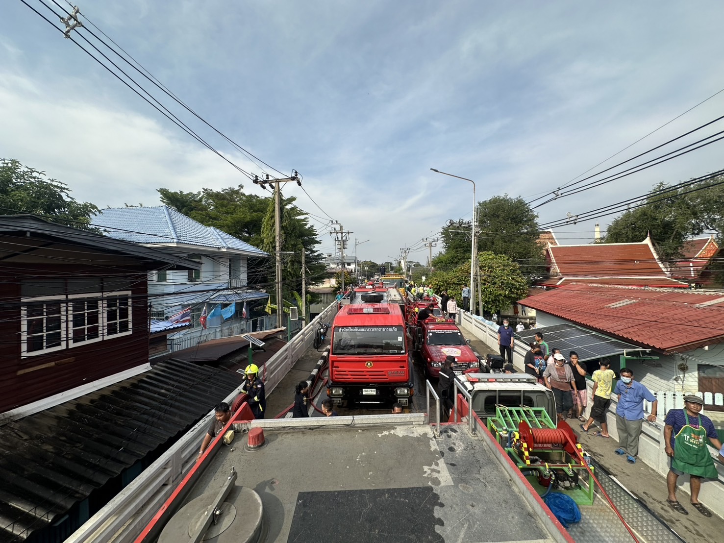 เวลา 14.50 น. เจ้าหน้าที่สถานีดับเพลิงและกู้ภัยบางขุนนนท์ถึงที่เกิดเหตุ เพลิงกำลังลุกไหม้ ลักษณะที่เกิดเหตุเป็นชุมชนปลูกติดกันหลายหลัง