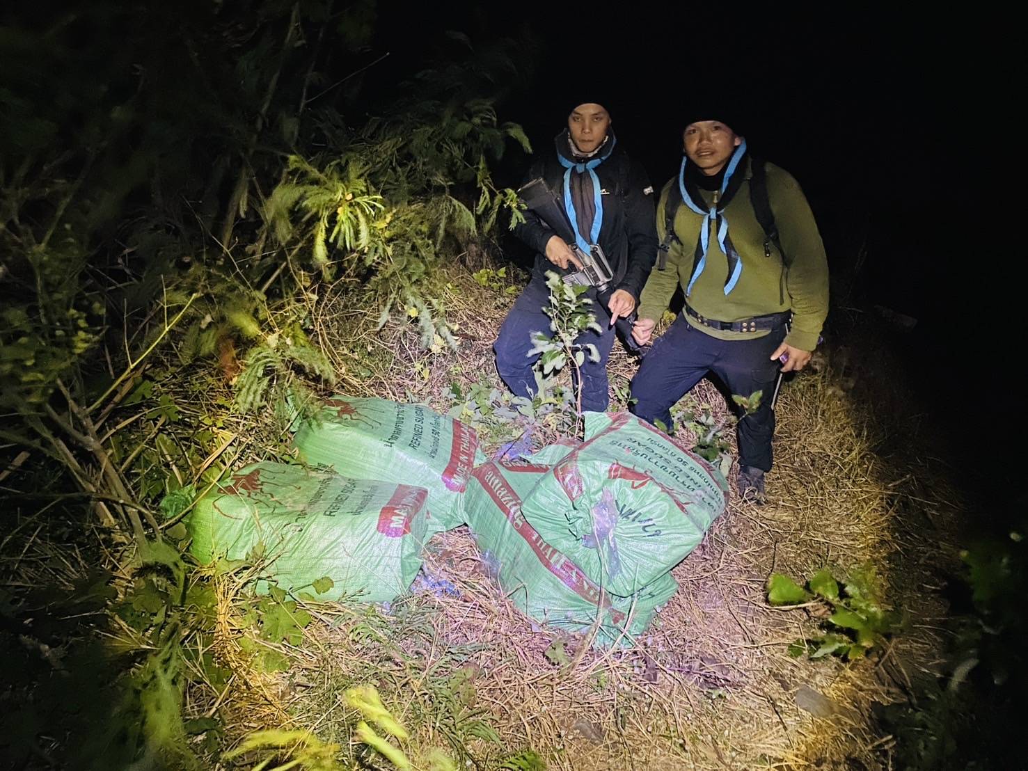 ต่อมาเวลา 19.30 น.จุดเฝ้าตรวจได้ใช้กล้องตรวจการณ์เวลากลางคืนตรวจพบเรือกีบติดเครื่องยนต์แล่นมาจากฝั่ง สปป.ลาว มุ่งหน้ามายังฝั่งไทย เมื่อเรือลำดังกล่าวมาถึงกลางแม่น้ำโขงได้ดับเครื่องยนต์และปล่อยเรือไหลมาตามแม่น้ำถึงฝั่งไทย ชุดเฝ้าตรวจได้แจ้งให้กับชุดซุ่มที่อยู่ใกล้กับจุดที่เรือเทียบฝั่งไทยเข้าตรวจสอบ พบชายประมาณ 3 คน กำลังยกสิ่งของ เจ้าหน้าที่ได้แสดงสัญญาณให้หยุดเพื่อขอตรวจค้น เมื่อกลุ่มชายดังกล่าวเห็นว่าเป็นเจ้าหน้าที่จึงได้ทิ้งสิ่งของและอาศัยความมืดวิ่งหลบหนีลงเรือไป จากฝั่งไทยมุ่งหน้าไปฝั่ง สปป.ลาว เจ้าหน้าที่จึงได้ตรวจสอบบริเวณดังกล่าว ตรวจพบกระสอบปุ๋ยสีเขียว จำนวน 5 กระสอบ ภายในบรรจุยาเสพติด (ยาบ้า) อยู่ในถุงพลาสติกสีน้ำเงินและสีชมพู และมี (HAPPY WATER) ในรูปแบบคอลลาเจน อยู่ในถุงภายในกระสอบปุ๋ย จึงได้ประสานหน่วยงานเกี่ยวข้องร่วมตรวจสอบที่เกิด หลังจากนั้นได้นำของกลางทั้งหมดมาตรวจนับที่ ทก.ร้อย.ทพ.2105 ผลการตรวจเป็นยาเสพติดให้โทษประเภท 1 (ยาบ้า) จำนวน 5 กระสอบ ประมาณ 994,000 เม็ด , คอลลาเจน สีชมพู จำนวน 78 ซอง หลังทำการบันทึกตรวจยึดเสร็จ ได้นำของกลาง ส่ง สภ.เมืองมุกดาหาร ดำเนินการตามกฎหมายต่อไป