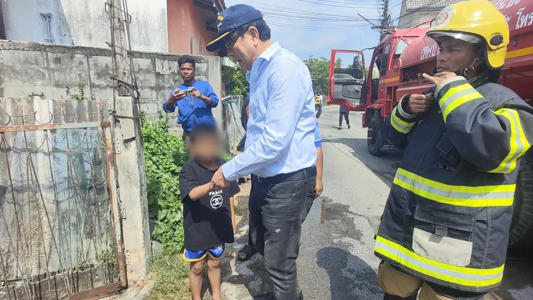 ไฟไหม้ห้องแถว เด็กชายวัย 7 ขวบนอนเล่นอยู่คนเดียว วิ่งหนีตายออกมาขอความช่วยเหลือ เพื่อนบ้านแจ้งเจ้าหน้าที่เข้ามาดับเพลิงทันก่อนจะลุกลาม จ.ชลบุรี