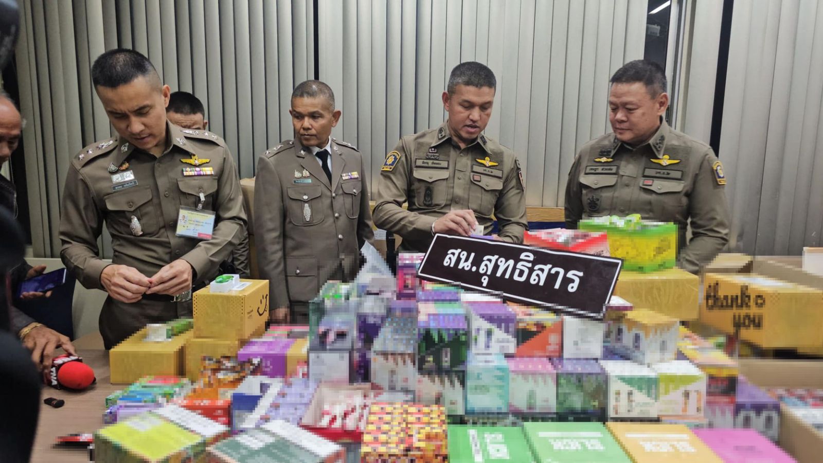 วานนี้ (วันที่ 1 ก.พ.) ที่ผ่านมา ฝ่ายสืบสวน สน.สุทธิสาร ร่วมจับกุมผู้ต้องหา 4 ราย พร้อมของกลางบุหรี่ไฟฟ้า กว่า 30,000 ชิ้น รวมมูลค่ากว่า 5 ล้านบาท โดยจับกุมได้ที่คอนโดมิเนียมแห่งหนึ่ง ย่านลาดพร้าว กรุงเทพ