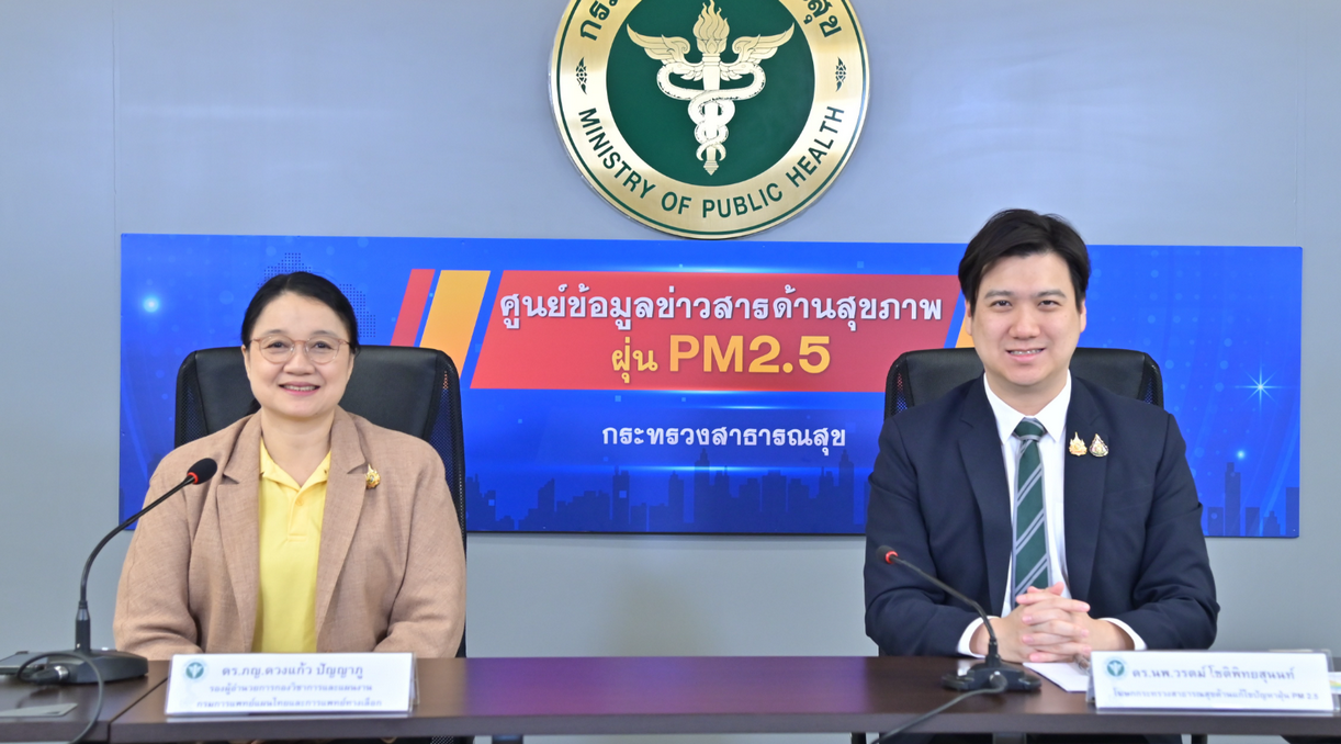 (3 กุมภาพันธ์ 2568) ที่ ศูนย์ข้อมูลข่าวสารด้านสุขภาพ ฝุ่น PM 2.5 กระทรวงสาธารณสุข ดร.นพ.วรตม์ โชติพิทยสุนนท์ โฆษกกระทรวงสาธารณสุข ด้านการแก้ไขปัญหาฝุ่น PM 2.5 พร้อมด้วย ดร.ภญ.ดวงแก้ว ปัญญาภู รองผู้อำนวยการกองวิชาการและแผนงาน กรมการแพทย์แผนไทยและการแพทย์ทางเลือก แถลงแนวทางการดูแลสุขภาพจากสถานการณ์ฝุ่น PM 2.5 โดย ดร.นพ.วรตม์ กล่าวว่า ข้อมูลจากกรมควบคุมมลพิษวันนี้ มีจังหวัดที่ค่าฝุ่นเกินมาตรฐานรวม 55 จังหวัด เป็นระดับสีส้ม เริ่มมีผลกระทบต่อสุขภาพ (37.6 - 75 มคก./ลบ.ม) 54 จังหวัด และระดับสีแดง มีผลกระทบต่อสุขภาพ (มากกว่า 75 มคก./ลบ.ม. ขึ้นไป) 1 จังหวัด คือ สระบุรี ซึ่งคาดการณ์ว่าสถานการณ์มีแนวโน้มเพิ่มขึ้นต่อเนื่อง ยกเว้นในพื้นที่ภาคใต้ ที่มีสภาพอากาศอยู่ในเกณฑ์ดี จึงขอย้ำประชาชนโดยเฉพาะในพื้นที่ค่าฝุ่นอยู่ในเกณฑ์สีส้มขึ้นไป ให้สวมหน้ากากอนามัยป้องกันฝุ่น และหลีกเลี่ยงการออกกำลังกายกลางแจ้ง หรือทำงานที่ต้องใช้แรงมาก