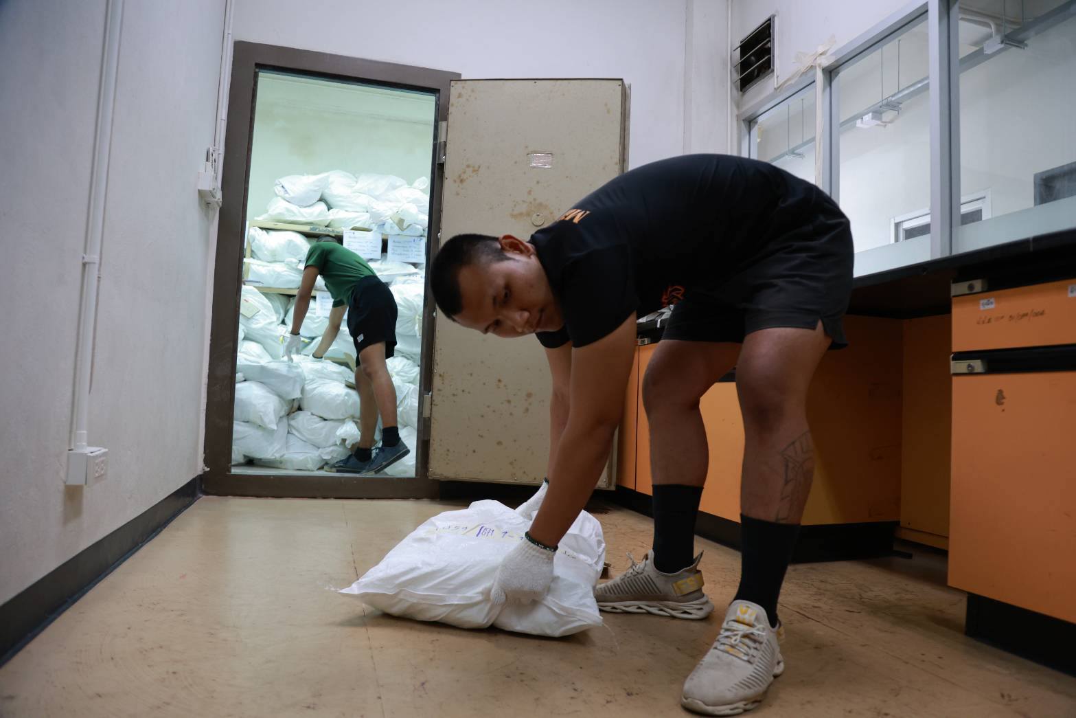 ที่เกี่ยวข้องได้ร่วมพิธีเปิด "ห้องมั่นคง" ณ สถาบันวิชาการและตรวจพิสูจน์ยาเสพติด สำนักงาน ป.ป.ส. ทุ่งสองห้อง เพื่อตรวจรับและส่งมอบยาเสพติดของกลางที่ผ่านการตรวจพิสูจน์แล้ว โดยมีน้ำหนักรวมทั้งสิ้น 27.51 ตัน ซึ่งเป็นผลจากการปฏิบัติงานปราบปรามยาเสพติดอย่างเข้มข้น โดยการตรวจรับและส่งมอบยาเสพติดของกลางจะดำเนินการระหว่างวันที่ 4 – 6 กุมภาพันธ์ 2568 การดำเนินงานครั้งนี้ เป็นไปตามระเบียบคณะกรรมการ ป.ป.ส. ว่าด้วยการตรวจรับ การตรวจพิสูจน์ การเก็บรักษา การทำลาย การนำไปใช้ประโยชน์ และการรายงานยาเสพติด พ.ศ. 2565 โดยมีคณะกรรมการและคณะทำงานทำลายยาเสพติดของกลางของสำนักงาน ป.ป.ส. ร่วมกับหน่วยงานที่เกี่ยวข้อง อาทิ สำนักงานคณะกรรมการอาหารและยา, กองบัญชาการตำรวจปราบปรามยาเสพติด,กรมวิทยาศาสตร์การแพทย์, สำนักงานพิสูจน์หลักฐานตำรวจ, กองบังคับการตำรวจทางหลวง, ตำรวจภูธรภาค 1, มณฑลทหารบกที่ 11 และสถานีตำรวจนครบาลทุ่งสองห้อง ร่วมกันดำเนินการอย่างโปร่งใส ทุกขั้นตอนอยู่ภายใต้การควบคุมและรักษาความปลอดภัยตลอด 24 ชั่วโมง