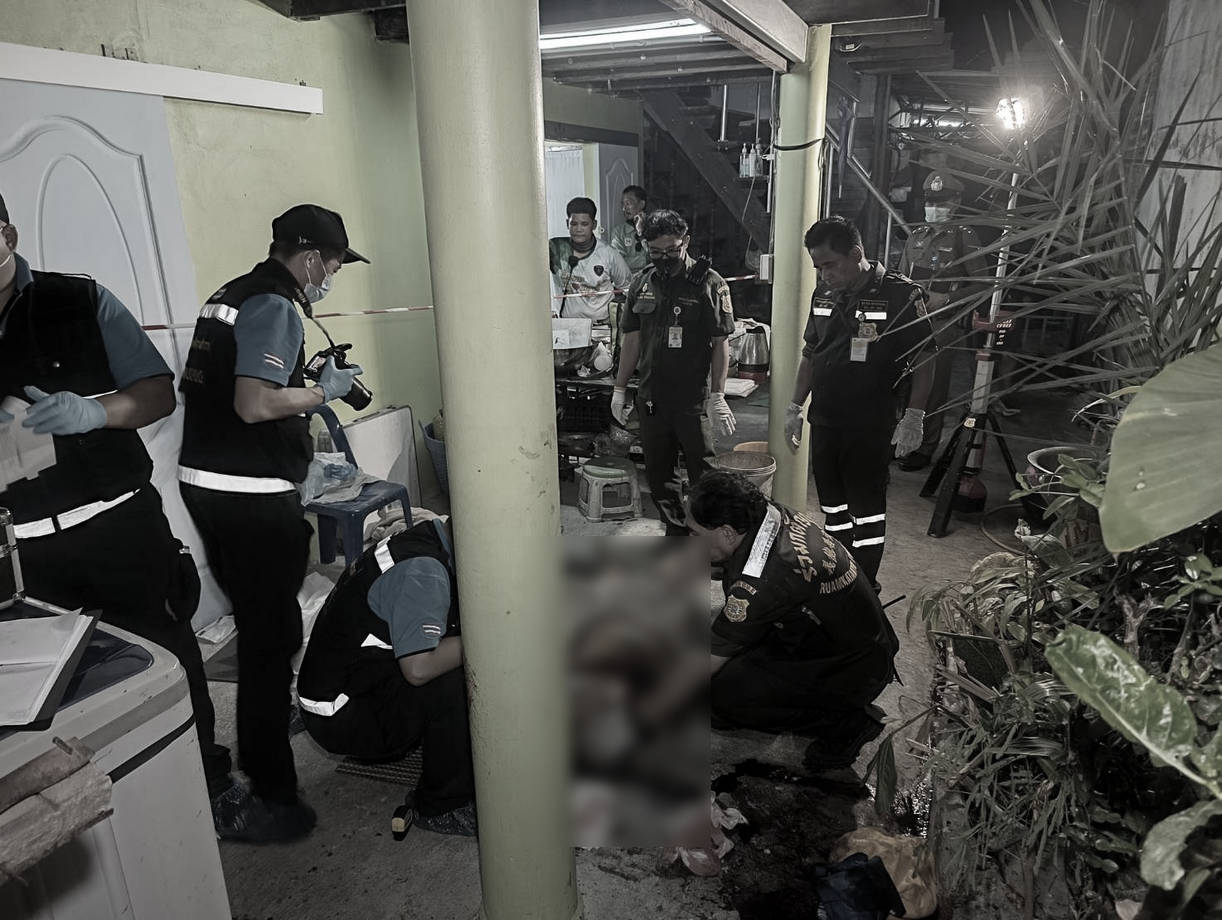 ส่วนที่เกิดเหตุเจ้าหน้าที่ได้ปิดปั้นพื้นที่ เพื่อตรวจสอบที่เกิดเหตุ พร้อมกับเจ้าหน้าที่กองพิสูจน์หลักฐาน และแพทย์เวรจากโรงพยาบาลบางจากรัฐบาล เข้าชันสูตรศพ