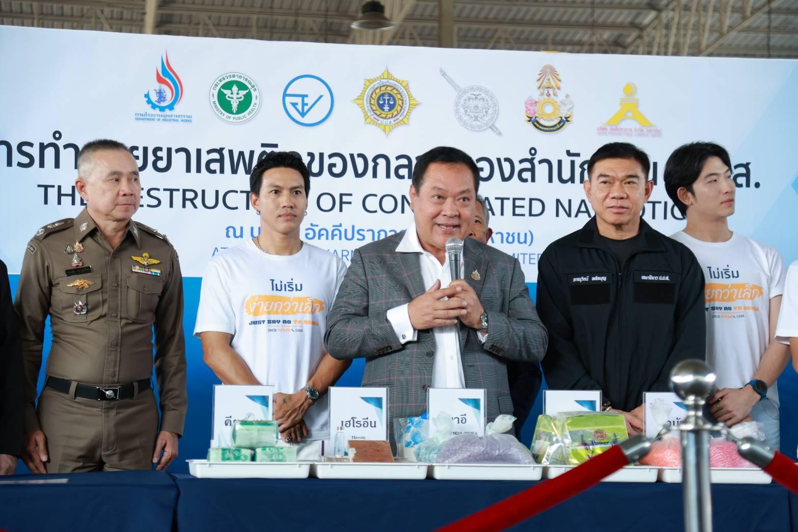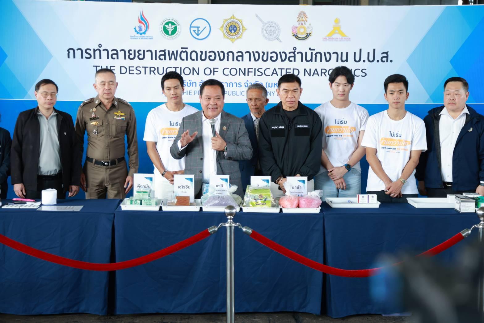วันที่ 6 กุมภาพันธ์ 2568 สำนักงาน ป.ป.ส. จัดพิธีเผาทำลายยาเสพติดของกลาง น้ำหนักรวมกว่า 27 ตัน โดยมี พ.ต.อ. ทวี สอดส่อง รัฐมนตรีว่าการกระทรวงยุติธรรม เป็นประธานในพิธี พร้อมด้วย พล.ต.ท.ภาณุรัตน์ หลักบุญ เลขาธิการ ป.ป.ส., นายอภิกิต ฉ. โรจน์ประเสริฐ รองเลขาธิการ ป.ป.ส. และผู้แทนจากหน่วยงานภาครัฐร่วมเป็นสักขีพยาน อาทิ ผู้แทนจากอุตสาหกรรมจังหวัดสมุทรปราการ และเพื่อตอกย้ำความโปร่งใส สำนักงาน ป.ป.ส. ได้เชิญตัวแทนนักกีฬาทีมชาติไทย ได้แก่ ธีรเทพ วิโนทัย, กิตติพงษ์ ปลื้มปรีดาพร และ ปาณัสม์ กิตติภาณุวงศ์ และเยาวชนอาเซียนจาก 9 ประเทศ (บรูไน, กัมพูชา, อินโดนีเซีย, ลาว, มาเลเซีย, เมียนมา, ฟิลิปปินส์, ไทย และจีน) จากโครงการพัฒนาเครือข่ายเยาวชนระหว่างประเทศ เพื่อการป้องกันยาเสพติด รุ่นที่ 4 เข้าร่วมสังเกตการณ์กระบวนการเผาทำลาย เพื่อเปิดโอกาสให้คนรุ่นใหม่มีส่วนร่วมตรวจสอบ และสร้างความเชื่อมั่นให้กับสังคม ณ บริษัท อัคคีปราการ จำกัด (มหาชน) นิคมอุตสาหกรรมบางปู จ.สมุทรปราการ