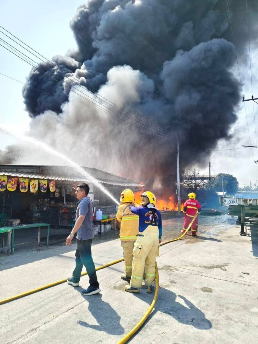 ไฟไหม้ห้องพักคนงานต่างด้าว โรงงานผลิตท่อพลาสติกและอุปกรณ์ ย่านกระทุ่มแบน จนท.พร้อมรถดับเพลิง ระดมใช้หัวฉีดน้ำสกัดเพลิง