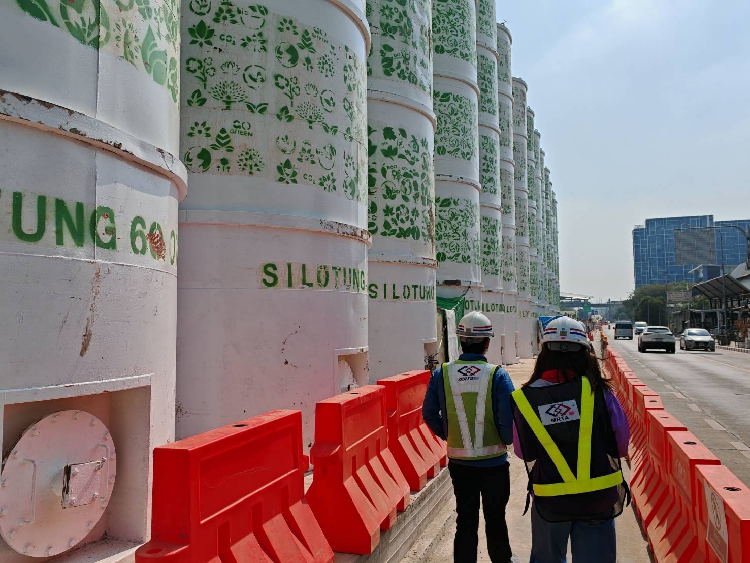 โดยในการลงพื้นที่ครั้งนี้ รฟม. ได้ตรวจสอบการปฏิบัติตามมาตรการป้องกันและแก้ไขผลกระทบสิ่งแวดล้อมในช่วงเวลากลางวัน ตามที่กำหนดไว้ในรายงานการประเมินผลกระทบสิ่งแวดล้อม (EIA) เช่น การปิดคลุมกองดิน กองทราย และเศษวัสดุก่อสร้าง ที่ก่อให้เกิดฝุ่นละอองในระหว่างรอการใช้งานหรือรอการขนย้าย การจัดเก็บขยะ การทำความสะอาดในพื้นที่ก่อสร้างและถนนสาธารณะ การสวมใส่อุปกรณ์คุ้มครองความปลอดภัยส่วนบุคคล รวมถึงตรวจสอบการติดตั้งรั้วทึบสูง 2 เมตร และการติดตั้งไฟส่องสว่างและสัญญาณไฟบนรั้วตามแนวพื้นที่ก่อสร้าง การป้องกันน้ำมันรั่วไหลจากเครื่องจักร การฉีดพรมน้ำเพื่อลดการฟุ้งกระจายของฝุ่นละออง เป็นต้น นอกจากนี้ยังได้กำชับเรื่องการจัดทำทางเดินเท้าชั่วคราวทดแทนทางเดินเท้าเดิมให้มีความปลอดภัย พร้อมป้ายแจ้งบอกแนวเส้นทางเดินเท้า และจัดให้มีเจ้าหน้าที่โครงการฯ คอยอำนวยความสะดวกให้กับประชาชนผู้ใช้เส้นทางในระหว่างที่มีการก่อสร้าง พร้อมเน้นย้ำให้เจ้าหน้าที่ทุกคนปฏิบัติตามมาตรการป้องกันและแก้ไขผลกระทบสิ่งแวดล้อมอย่างเคร่งครัดต่อไป สำหรับท่านที่สนใจสามารถติดตามข้อมูลโครงการฯ ได้ที่ เฟซบุ๊ก โครงการรถไฟฟ้าสายสีส้ม ช่วงบางขุนนนท์ - ศูนย์วัฒนธรรมแห่งประเทศไทย และ TikTok @orangeline.pr หรือติดตามข้อมูลข่าวสาร รฟม. เพิ่มเติมได้ที่เว็บไซต์ รฟม. www.mrta.co.th และเฟซบุ๊กแฟนเพจการรถไฟฟ้าขนส่งมวลชนแห่งประเทศไทย หรือ Call Center รฟม. โทรศัพท์ 0 2716 4044