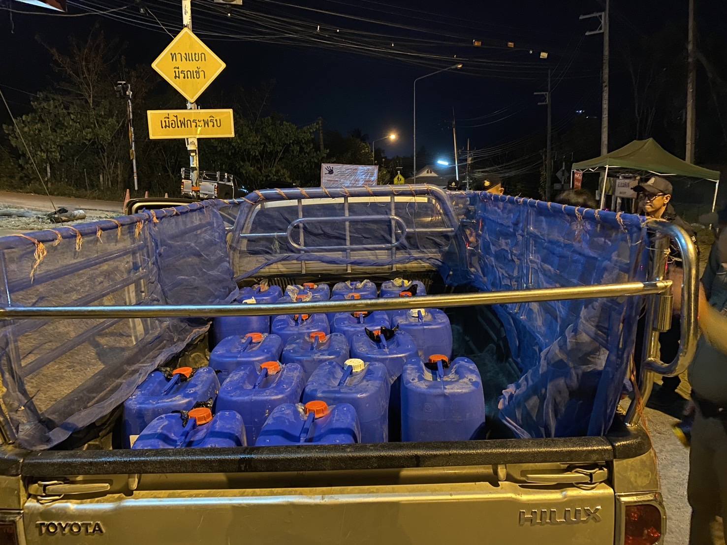 หน่วยเฉพาะกิจราชมนู และ จนท.ตร.จึงได้ร่วมทำการตรวจยึดถังน้ำมันดีเซล จำนวน 20 ถัง เพื่อตรวจสอบ และดำเนินการตามกฏหมายต่อไป