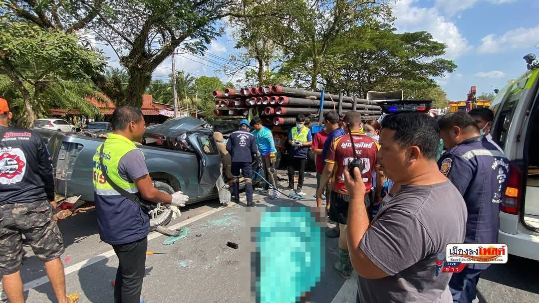หนุ่ม 34 ปี ขับรถกระบะชนท้ายรถบรรทุก 18 ล้อบนถนนเพชรเกษม เสียชีวิตร่างติดค้างภายในยานพาหนะ จ.พัทลุง