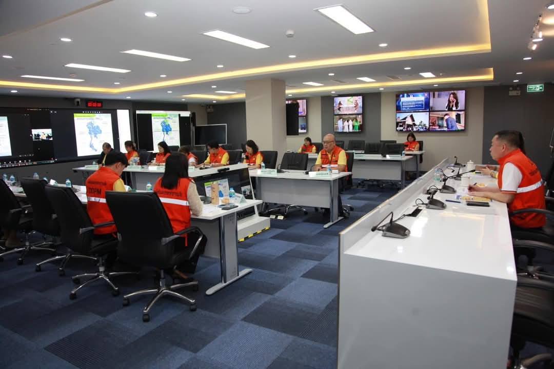 วันนี้ (10 ก.พ. 68) เวลา 10.00 น. ณ ห้องกองบัญชาการป้องกันและบรรเทาสาธารณภัยแห่งชาติ (บกปภ.ช.) อาคาร 3 ชั้น 5 กรมป้องกันและบรรเทาสาธารณภัยจัดประชุมกองบัญชาการป้องกันและบรรเทาสาธารณภัยแห่งชาติ เพื่อติดตามสถานการณ์และการแก้ไขปัญหาไฟป่า หมอกควัน และฝุ่นละอองขนาดเล็ก (PM2.5) โดยมีผู้บริหาร ปภ. และผู้แทนหน่วยงานที่เกี่ยวข้องเข้าร่วมประชุมฯ ขอให้จังหวัดและหน่วยงานที่เกี่ยวข้องเฝ้าระวังสถานการณ์ฝุ่นในช่วงวันที่ 11 – 13 ก.พ. 68 อย่างใกล้ชิด พร้อมประชาสัมพันธ์ให้ประชาชนรับทราบสถานการณ์และการเตรียมการป้องกันฝุ่นในห้วงดังกล่าว ตลอดจนเน้นย้ำจังหวัดติดตามและตรวจสอบพื้นที่ที่มีค่าจุดความร้อนสูง เพื่อวิเคราะห์หาสาเหตุเพื่อนำมาสู่การแก้ไขปัญหาที่เหมาะสม