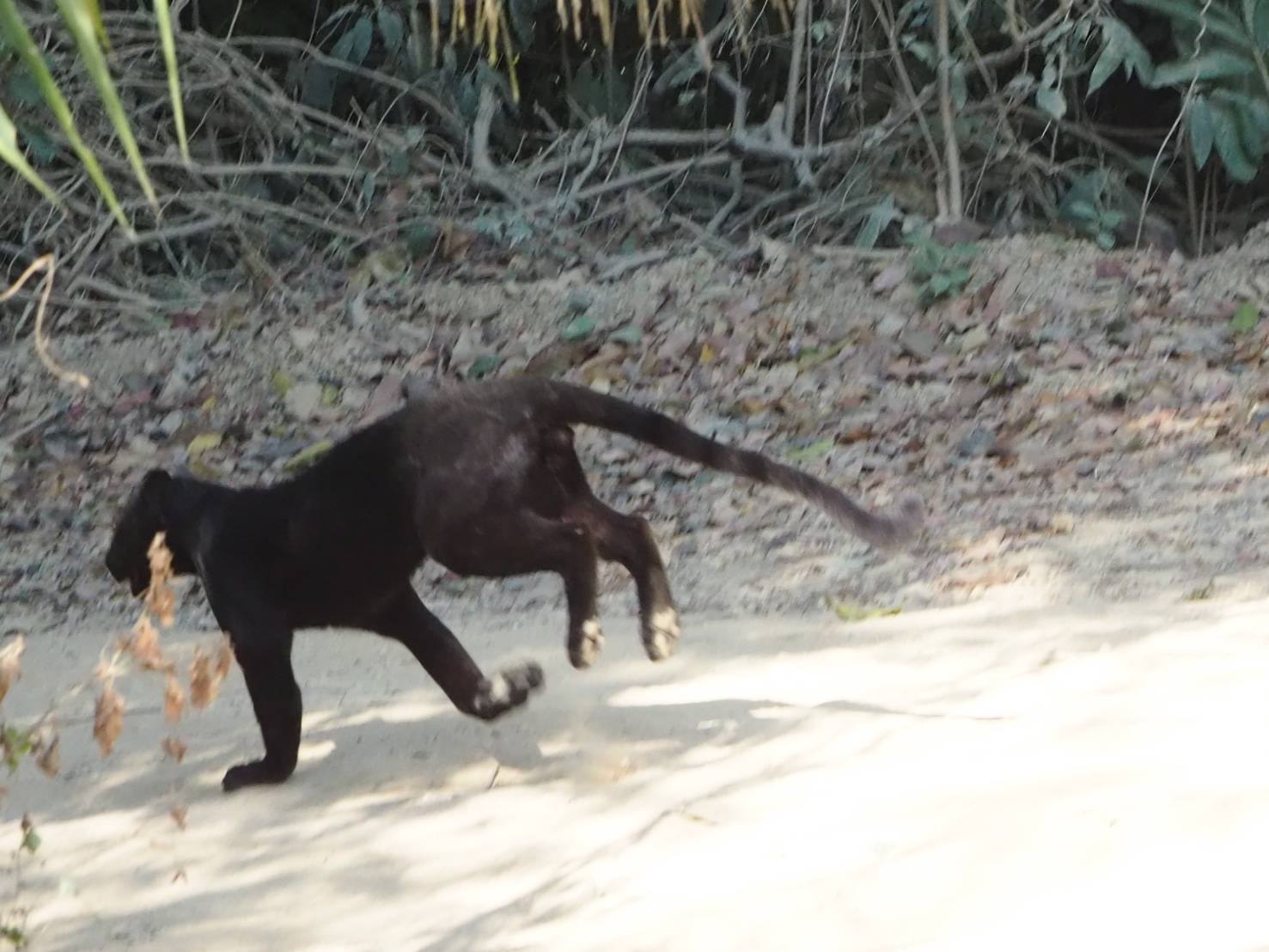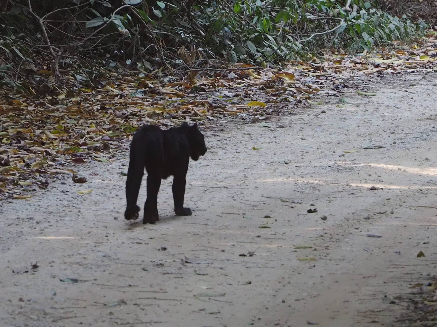 เสือดำที่พบมีพฤติกรรมน่าสนใจ แทนที่จะตกใจหรือแสดงอาการก้าวร้าว กลับเดินอย่างสง่าผ่าเส้นทางที่มีรถนักท่องเที่ยวจอดอยู่ ใช้เวลาราว 2-3 นาทีในการข้ามถนน ก่อนจะหายตัวเข้าไปในพงไพรอันรกทึบ สร้างความประทับใจให้กับผู้พบเห็นทุกคน