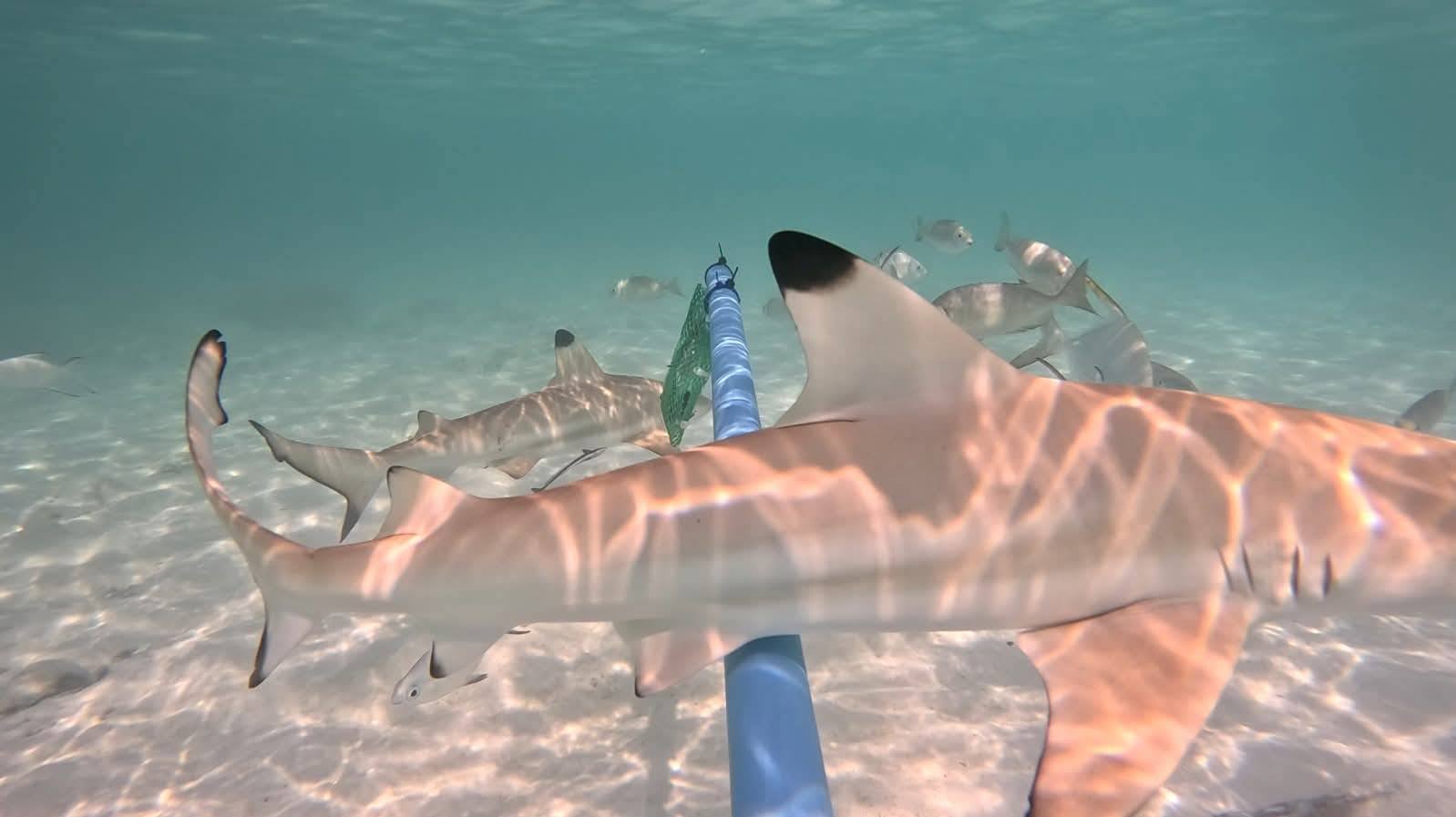 โดยใช้วิธีถ่ายภาพทางอากาศ (อากาศยานไร้คนขับ) เพื่อนับประชากรฉลาม และติดตั้งกล้องถ่ายใต้น้ำ BRUV (Baited Remote Underwater Video) เพื่อสังเกตพฤติกรรมฉลาม จากการสำรวจเบื้องต้น พบประชากรของฉลามครีบดำมากที่สุด ล่าสุดในช่วงเช้าของวันที่ 4 กุมภาพันธ์ 2568 มีจำนวนถึง 172 ตัว ทั้งนี้ข้อมูลที่ได้จะนำไปวิเคราะห์ในเชิงลึก