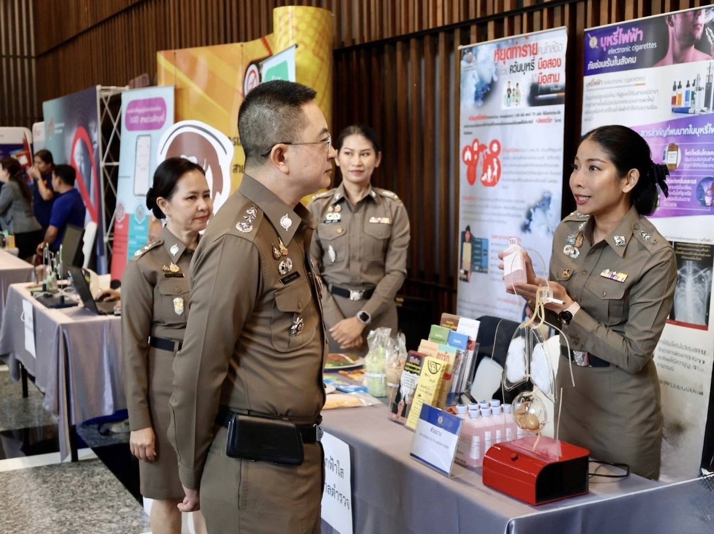 ขณะที่ พล.ต.ท.ทวีศิลป์ เวชวิทารณ์ นายแพทย์ใหญ่ (สบ 8)กล่าวว่า โรงพยาบาลตำรวจมีนโยบายความร่วมมือกับหน่วยงานภาครัฐและเอกชน อาทิ สคบ. สสส. เพื่อดำเนินโครงการเชิงรุกในการดูแลสุขภาพของข้าราชการตำรวจ ประชาชน และเยาวชน ”คลินิกฟ้าใส“ ซึ่งเป็นคลินิกเฉพาะทางด้านการเลิกบุหรี่ และ “หน่วยเยี่ยมบ้าน” ซึ่งเป็นหน่วยงานที่ออกไปดูแลสุขภาพประชาชนถึงบ้าน ลงพื้นที่เพื่อดำเนินการตามนโยบาย โดยมีการบูรณาการให้ความรู้ เรื่องพิษภัยจากบุหรี่ และบุหรี่ไฟฟ้า เพศวิถี และการรณรงค์ยุติการบูลลี่“ ไปตามสถานศึกษาต่างๆเพื่อสุขภาพที่ดีให้กับประชาชนโดยเฉพาะอย่างยิ่งในกลุ่มเด็กและเยาวชนต่อไป