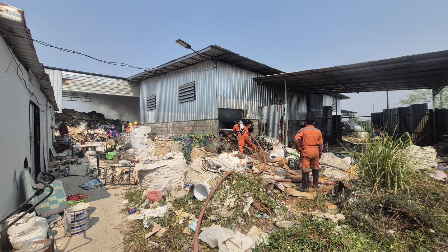 ไฟไหม้ในโกดัง โรงรับซื้อของเก่า โชคดี ควบคุมเพลิงไว้ได้ทันก่อนจะลุกลาม จ.ชลบุรี