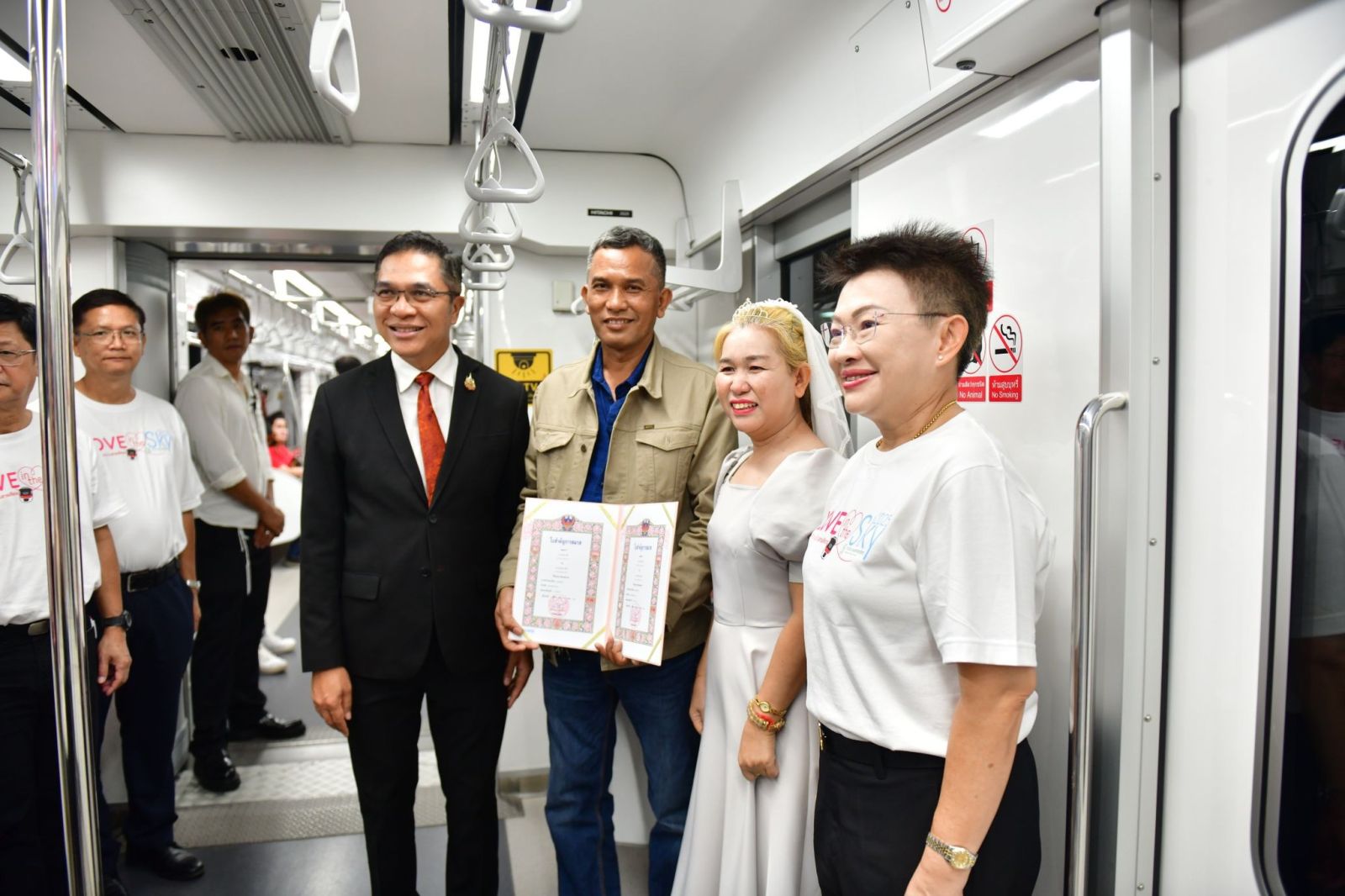 ทั้งนี้ กิจกรรม “Love in the Sky 2025” จดทะเบียนสมรสบนขบวนรถไฟฟ้า เป็นการเปิดประวัติศาสตร์หน้าใหม่ ที่ขบวนรถไฟฟ้าจะเป็นพื้นที่สำหรับคู่รักทุกเพศทุกวัยได้แสดงออกถึงความรักได้อย่างเท่าเทียม และเป็นการสะท้อนถึงค่านิยมในสังคมที่ยอมรับและเคารพในสิทธิของทุกคน และคู่รักยังได้แลกเปลี่ยนคำมั่นสัญญาในบรรยากาศสุดพิเศษที่ไม่เหมือนใคร โดยไฮไลต์ในงาน คือ การจดทะเบียนสมรสที่เป็นส่วนหนึ่งของประวัติศาสตร์แห่งความรักบนขบวนรถไฟฟ้าชานเมืองสายสีแดง พร้อมพาคู่รักไปชมทัศนียภาพอันสวยงามผ่านทิวทัศน์ของชานเมืองกรุงเทพฯ และสนามบินนานาชาติดอนเมืองไปด้วยกัน