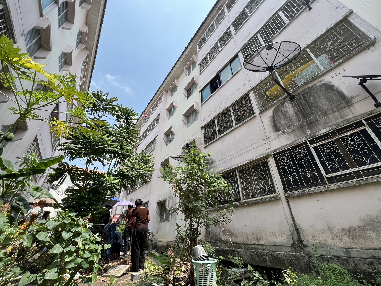 ที่เกิดเหตุพบเป็นช่องทางด้านหลังอาคาร 33 และอาคาร 34 พบเด็กชาย เอ อายุ 12 ปี สวมเสื้อยืดแขนสั้นสีดำ สวมกางเกงขายาวลายสก็อต นอนหมดสติอยู่ที่พื้นปูน ได้รับบาดเจ็บข้อมือข้างขวาหัก ข้อมือขวาถลอก ขาซ้ายหัก และบริเวณที่ชั้น 3 พบหน้าต่างด้านหลังเปิดอยู่ เจ้าหน้าที่กู้ภัยเร่งปฐมพยาบาลนำตัวส่ง รพ.กรมชลประทาน ปากเกร็ด