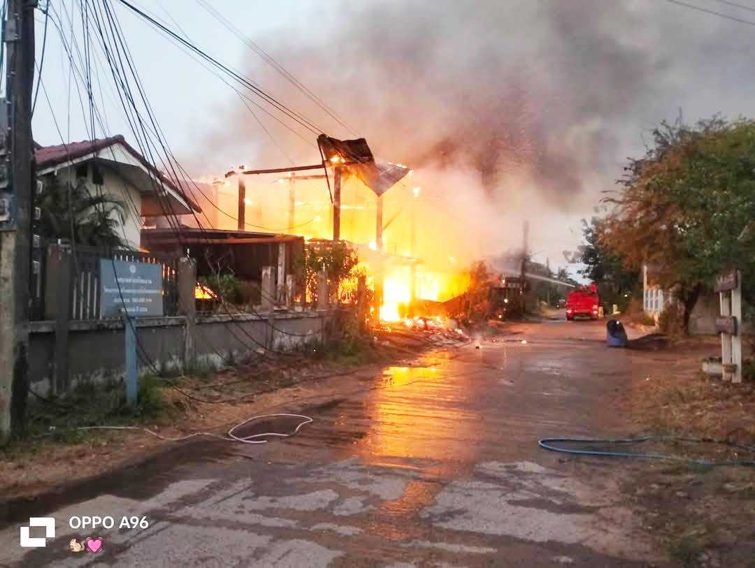 เพลิงไหม้บ้านเรือนแล้วลุกลามหลังข้างเคียงเสียหายวอด 4 หลังคาเรือน โชคดีไร้บาดเจ็บหรือเสียชีวิต จ.อุบลราชธานี