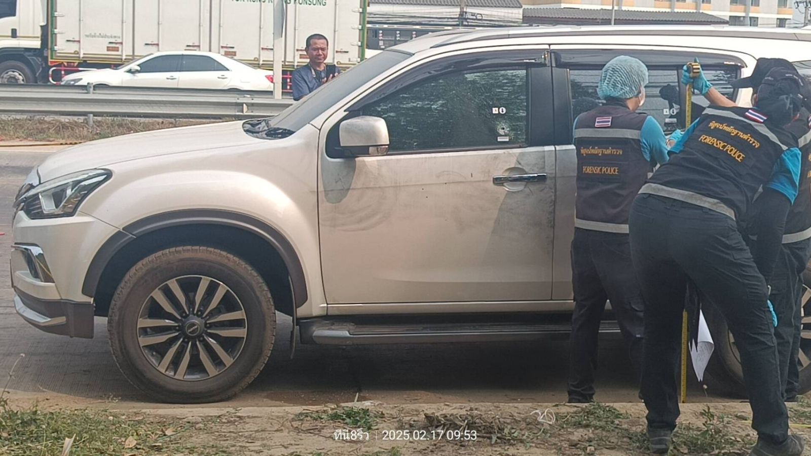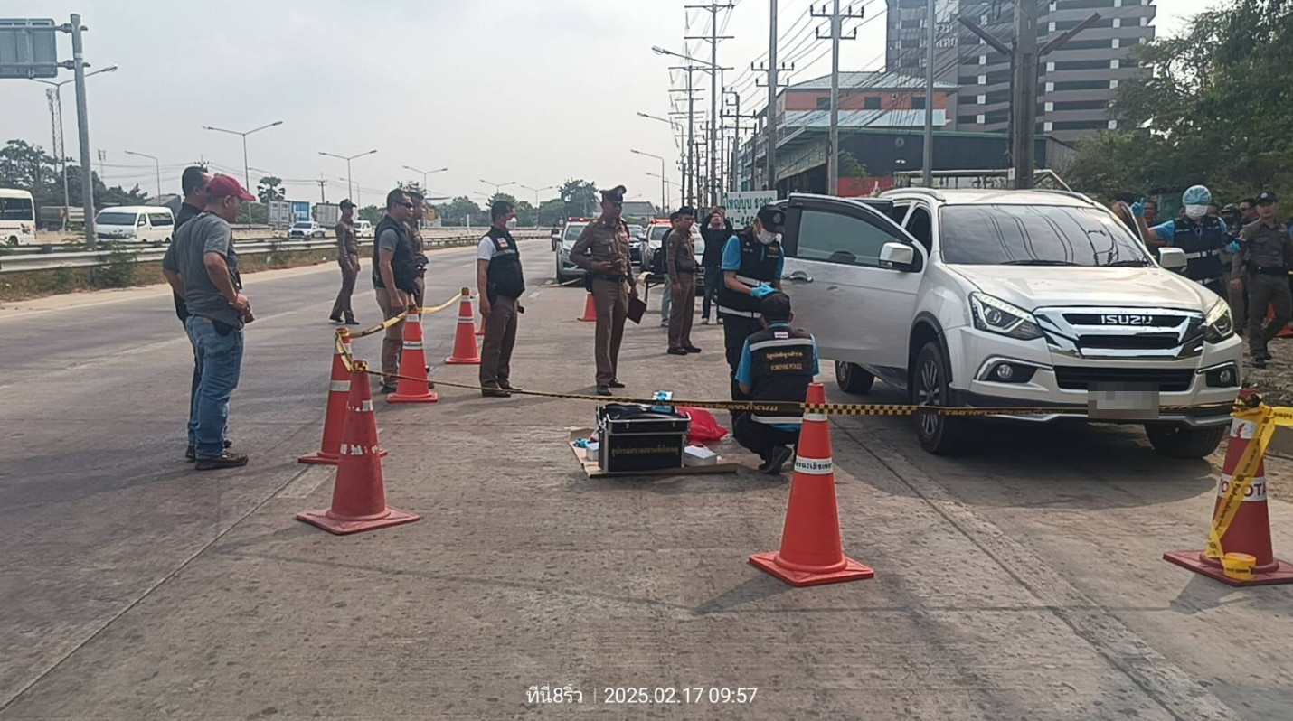 เวลา 09.00 น. วันที่ 17 ก.พ.68 พ.ต.อ.ณัฐพล อะกะเรือน ผกก.สภ.เมืองฉะเชิงเทรา รับแจ้งพบผู้เสียชีวิต 2 ศพ ภายในรถอีซูซุ มิว สีขาว ทะเบียน งน 4359 ชลบุรี เป็นชาย 1 ราย หญิง 1 ราย บริเวณใกล้เคียงโรงพยาบาลรวมแพทย์ฉะเชิงเทรา เบื้องต้นพบรอยกระสุนปืน 2 นัด บริเวณกระจกรถด้านซ้ายทั้ง 2 บาน เสียชีวิตมาแล้วไม่ต่ำกว่า 12 ชั่วโมง ตำรวจคาดว่าเรื่องหึงหวง